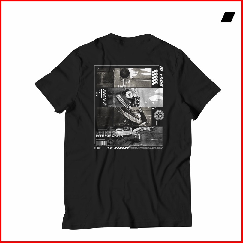 Prayerfaith - Kaos Pria Distro Brand Local Warna Hitam Motif Shoes Bahan Katun