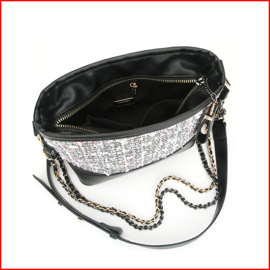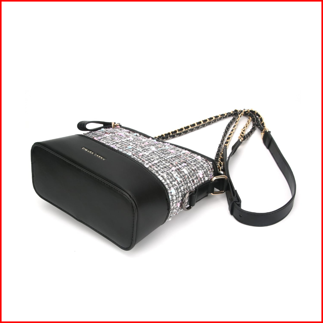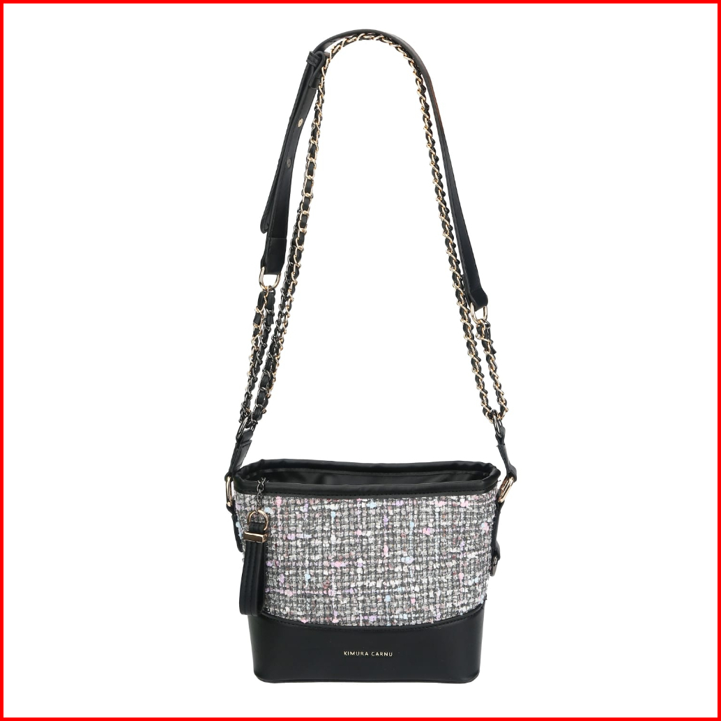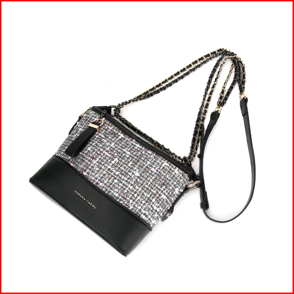 Kimura Carnu - Slingbag Tali Rantai Rantai Black Silver Tas Rajut Wanita 6119