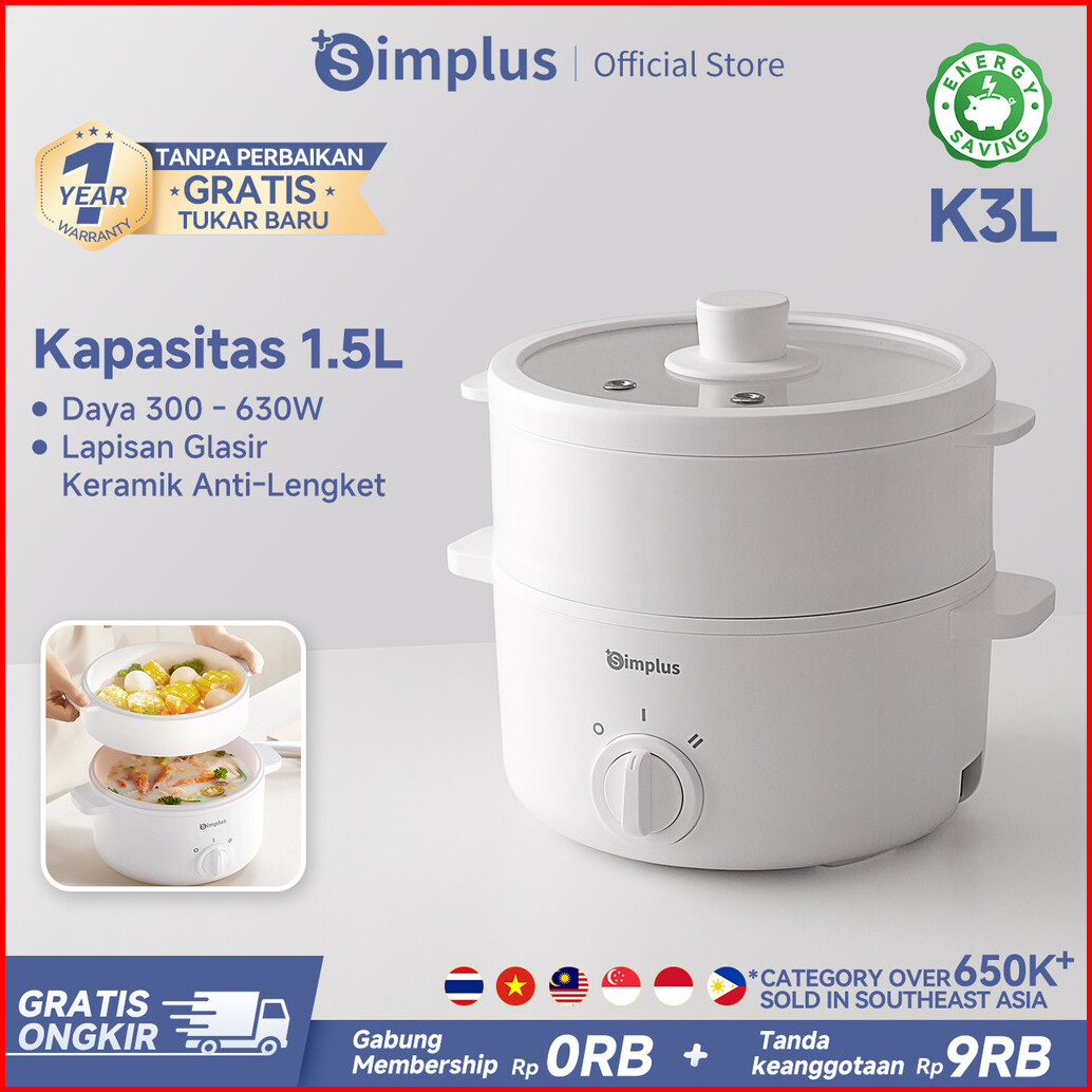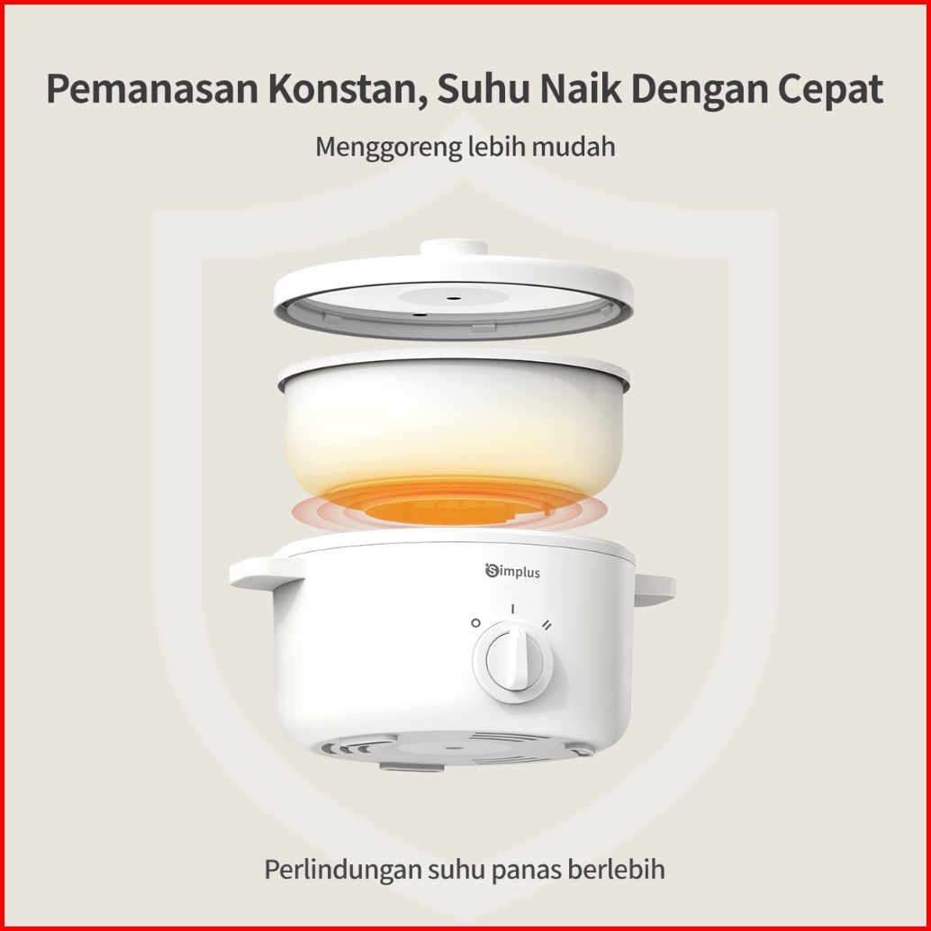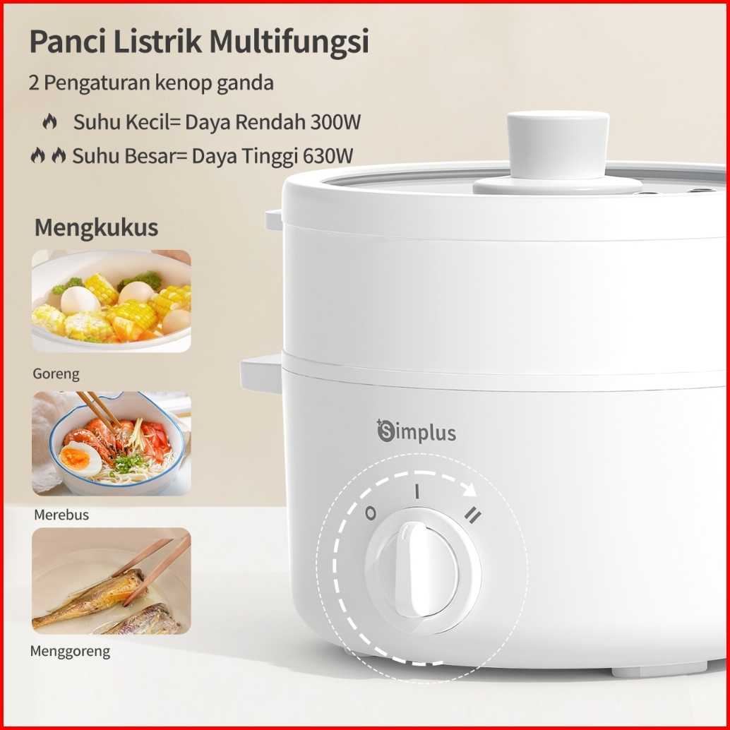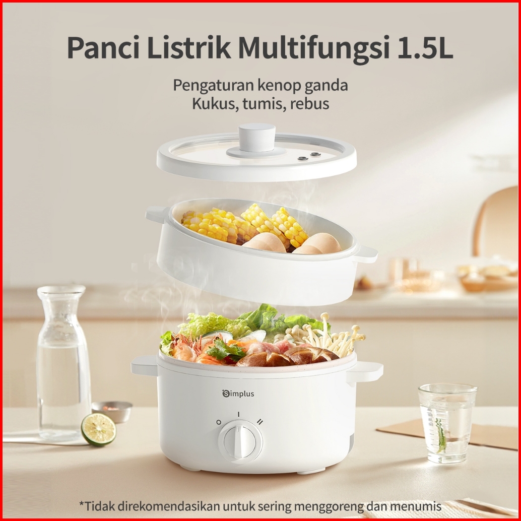 Simplus Panci Listrik Kapasitas 1.5l Panci Serbaguna Anti Lengket Dengan Kukusan Plastik