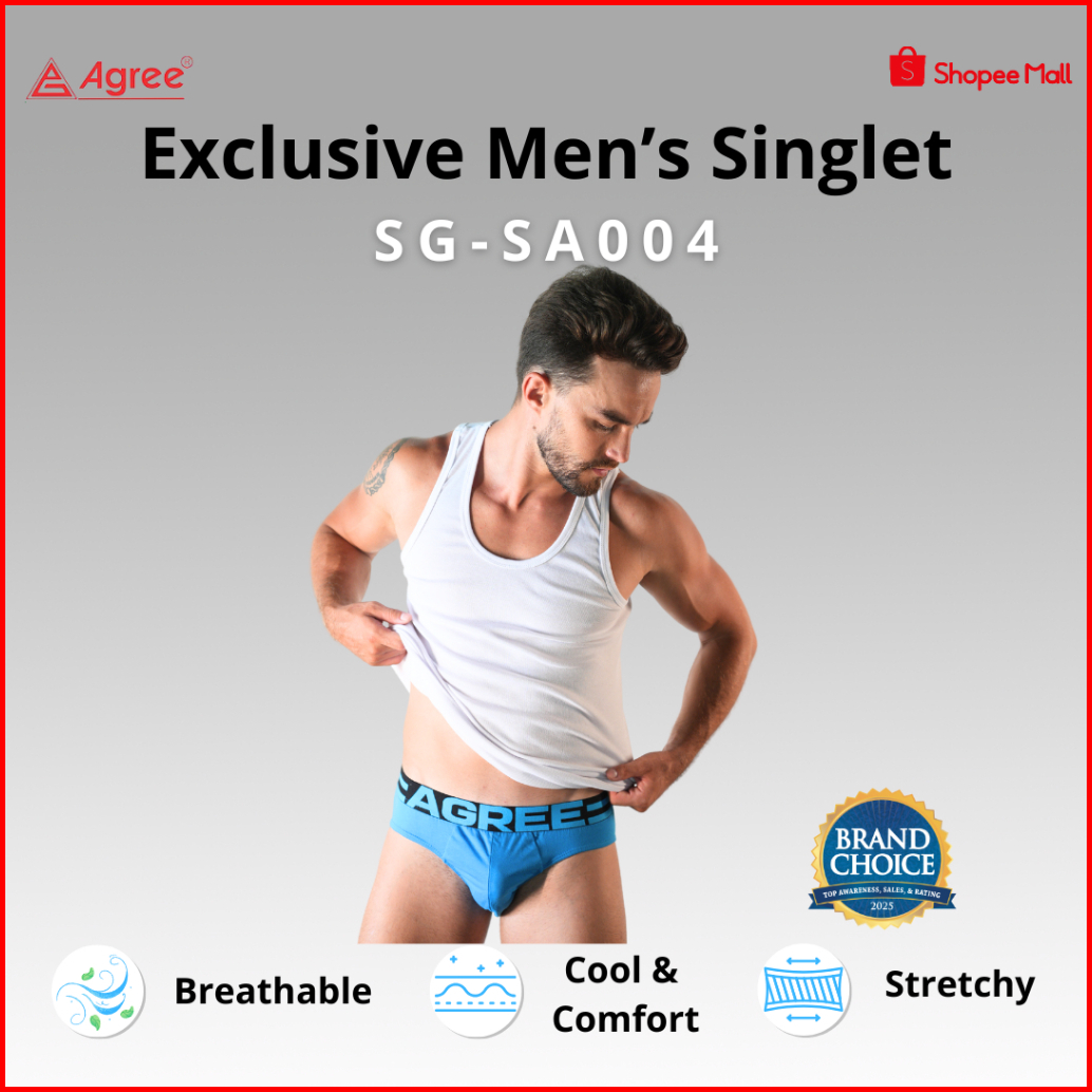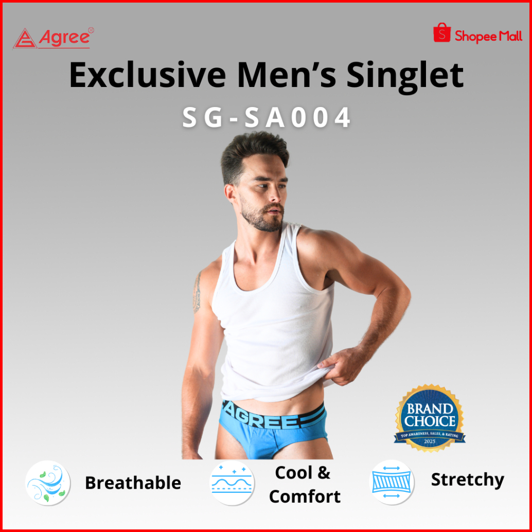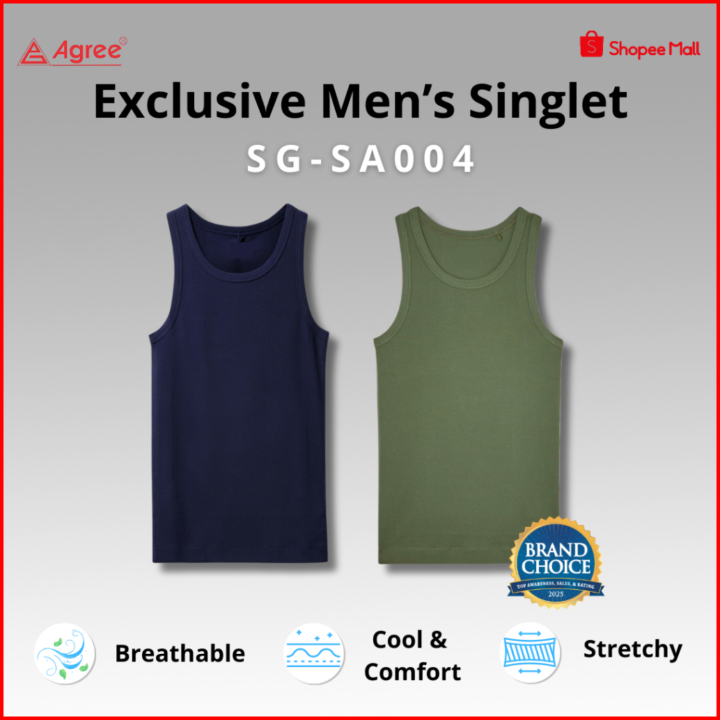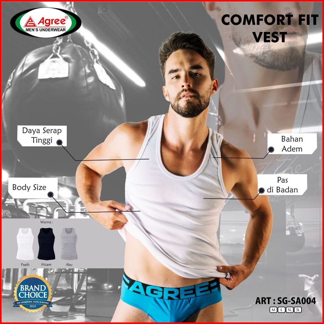 Agree - Singlet Pria Body Fit Katun Adem Kaos Dalam Stretch Sg-sa004 M To Xxl
