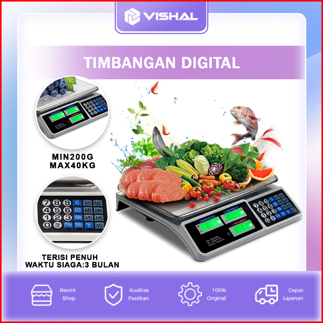 Vishal Digital Computing Scale 40kg Double Display Timbangan Digital Buah Vs-6018