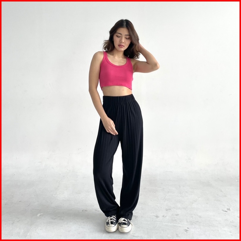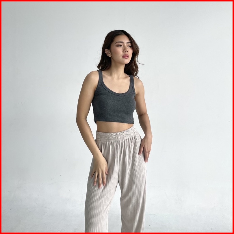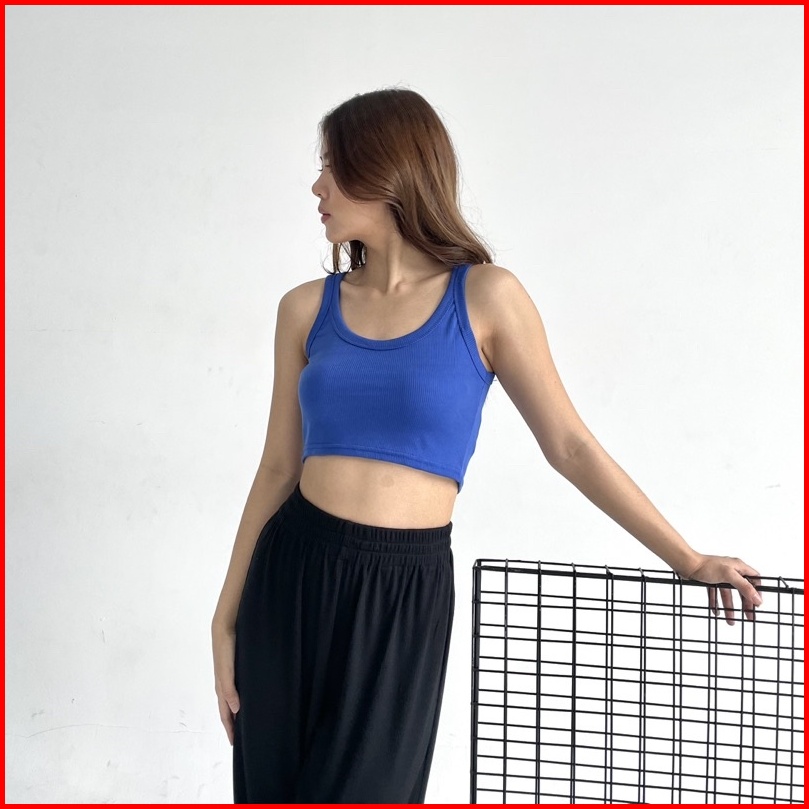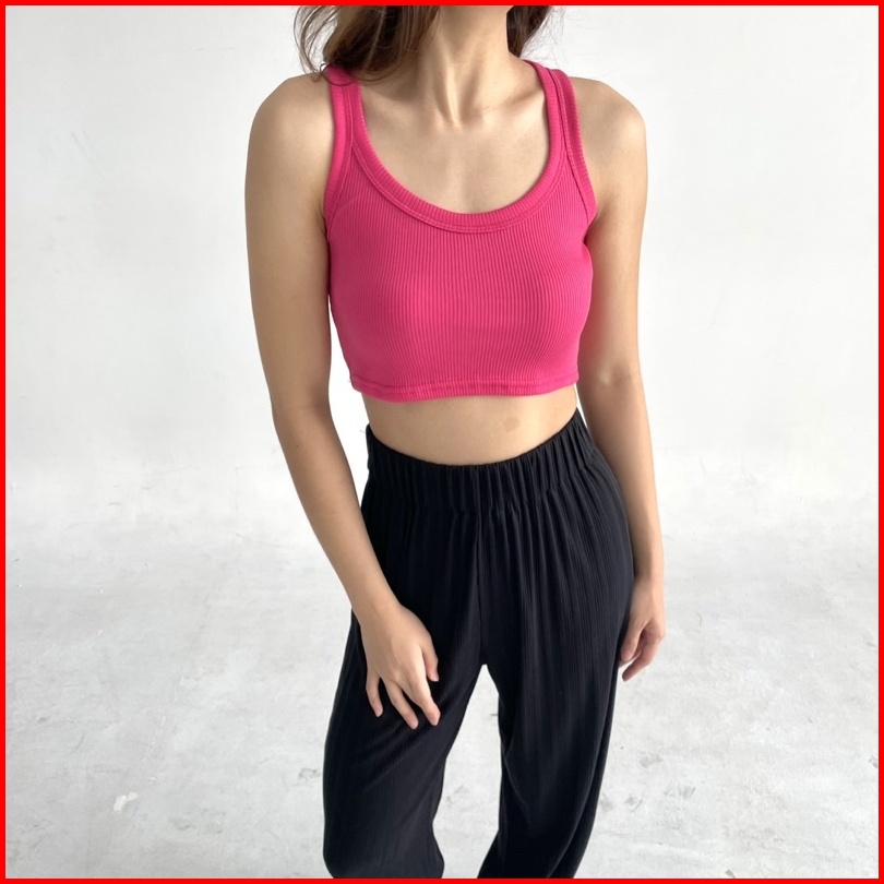 Uni Top - Ribbed Knit Crop Tank Tanktop Summer Atasan Crop Top Stretch Rib Ribbed Knit Tank