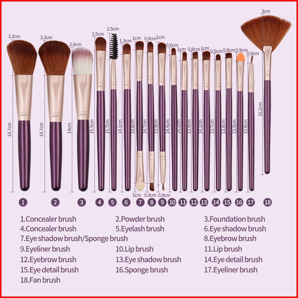 Maange 18 Pcs Set Makeup Brush Set Kuas Makeup Lengkap Beauty Brush Kuas Eyeshadow Kuas 5445