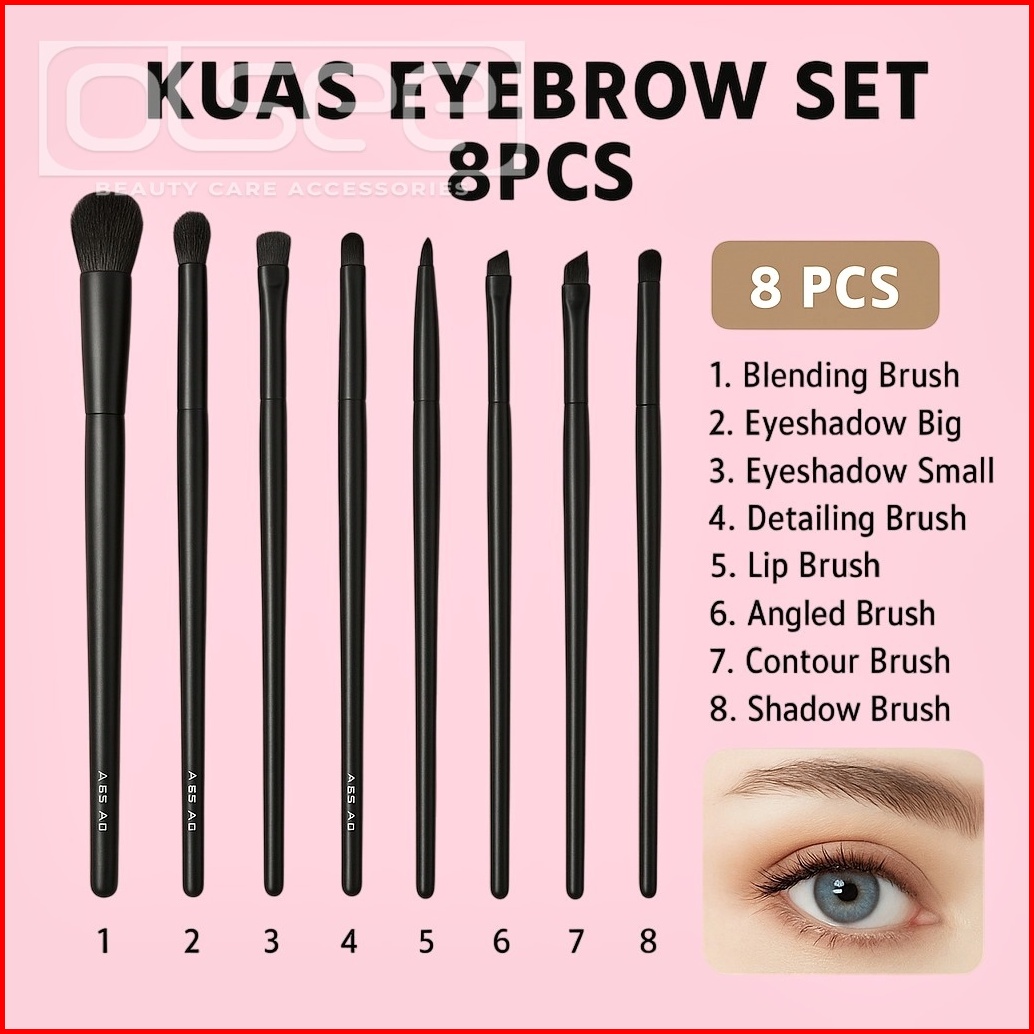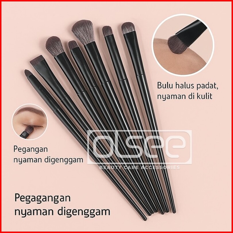 Olsee - 8 Pcs Makeup Brush Set Kuas Eyeshadow Profesional Kuas Detail Mata Eye Makeup Brushes S1389