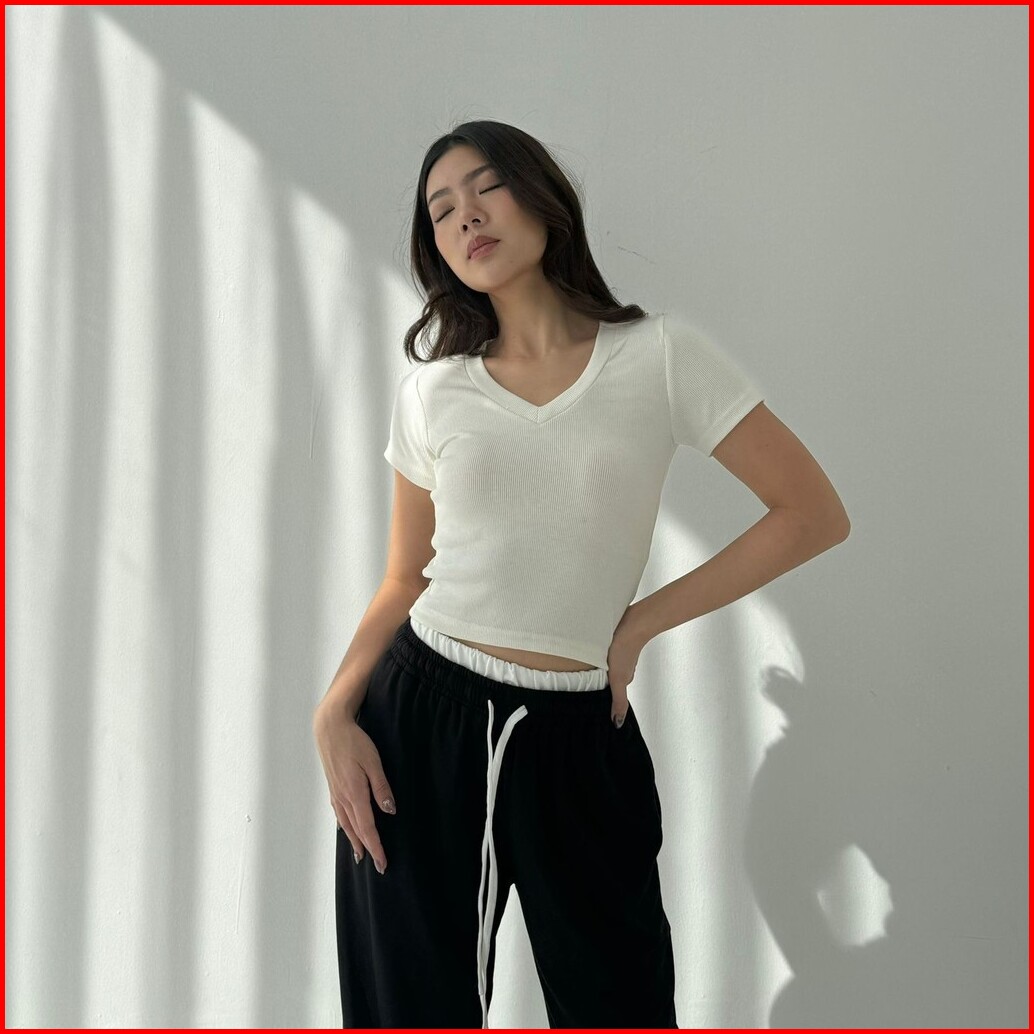 Aries Top Atasan Knit Wanita Korean Top Baju Knit Wanita Lengan Pendek Basic Short Sleeve