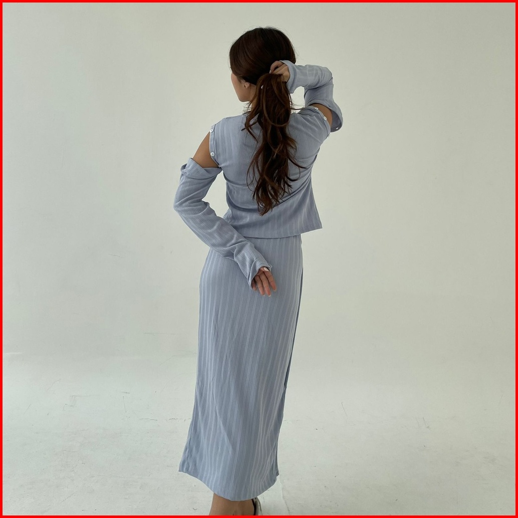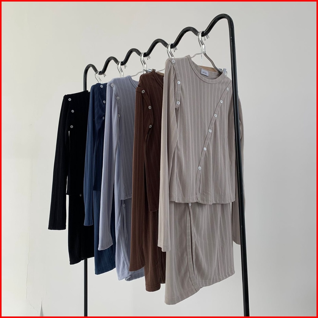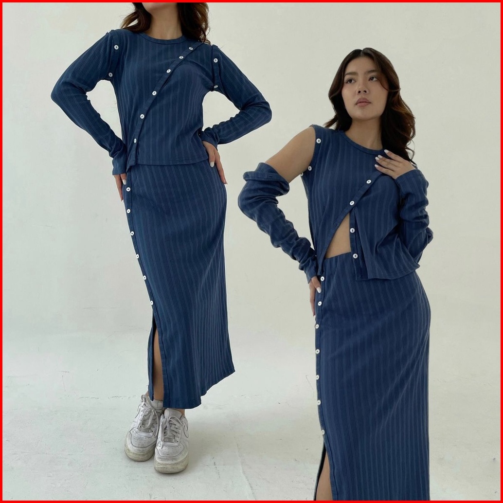 Sunday Set Setelan Wanita Rok Panjang Atasan Berlengan Ribbed Knit Set Lengan Panjang Midi Skirt Korean Long Skirt Long
