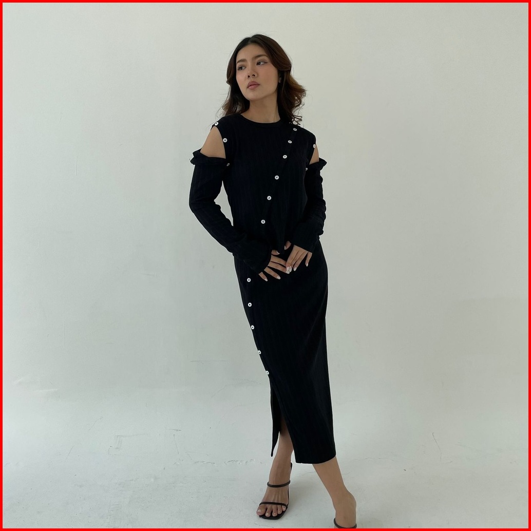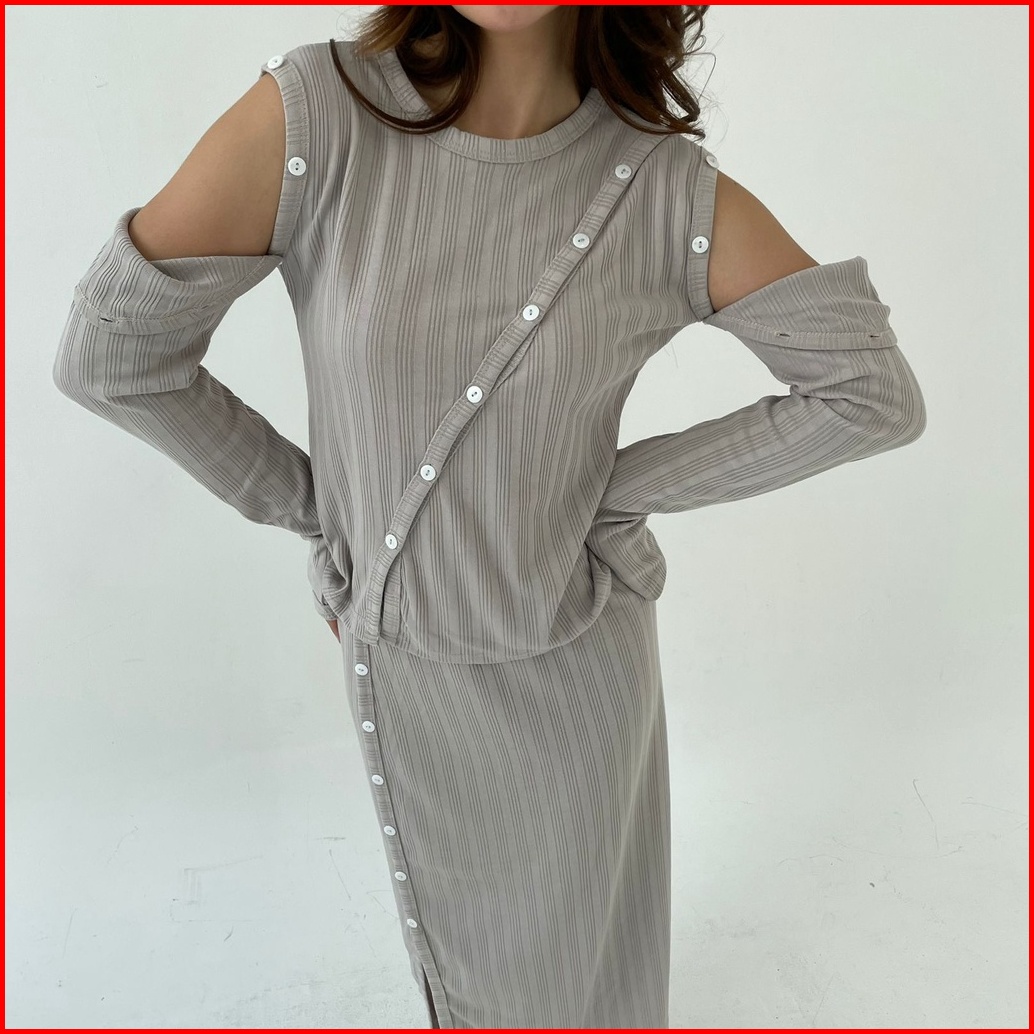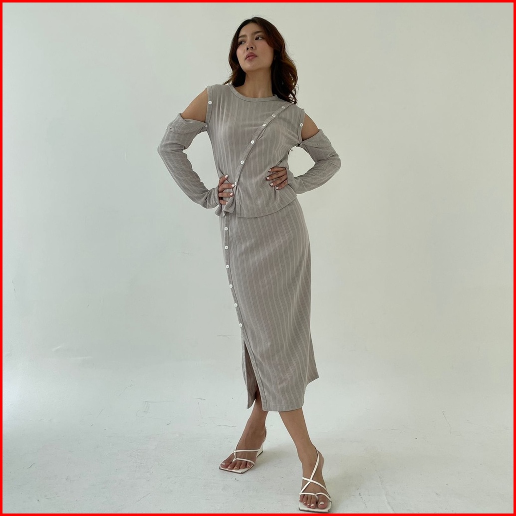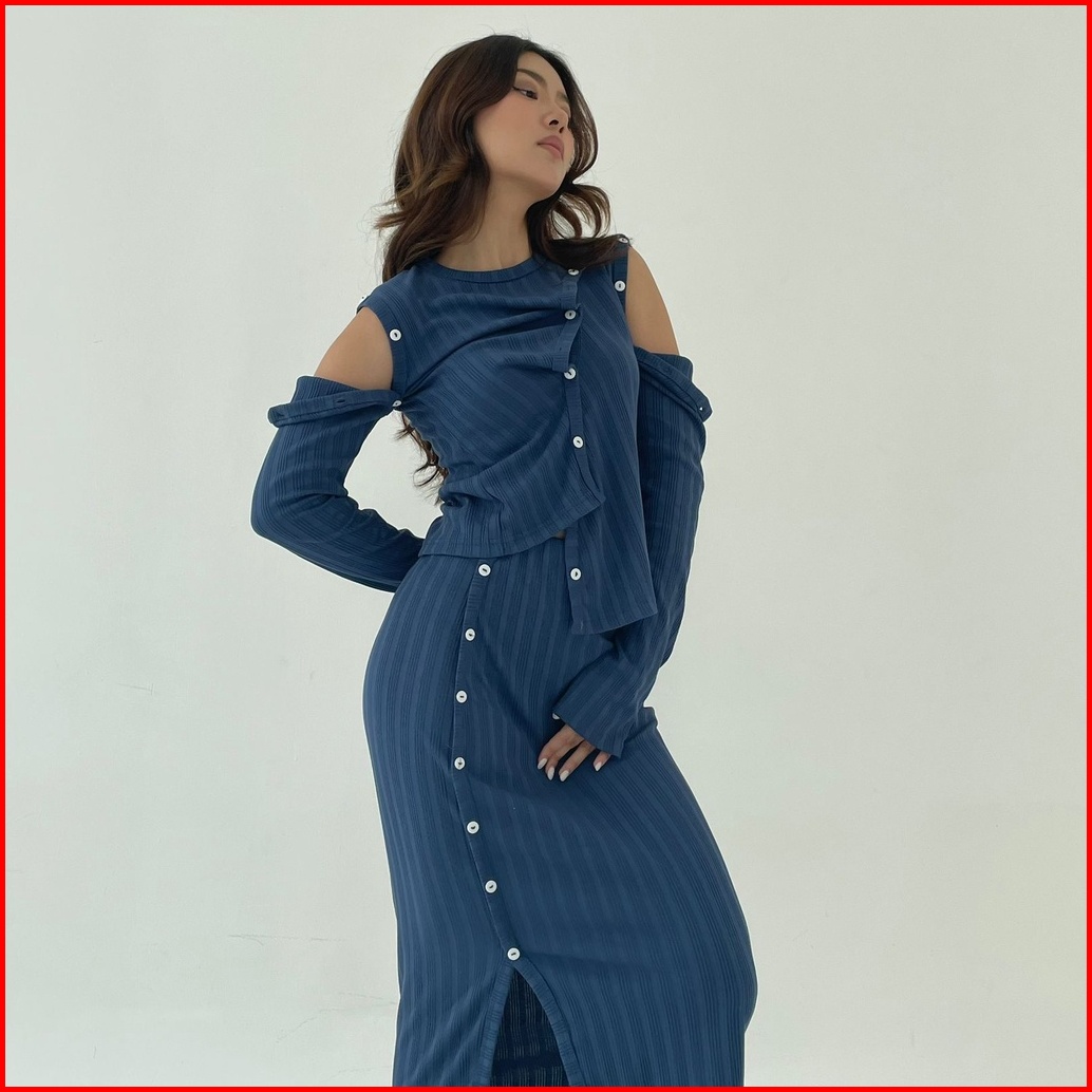 Sunday Set Setelan Wanita Rok Panjang Atasan Berlengan Ribbed Knit Set Lengan Panjang Midi Skirt Korean Long Skirt Long