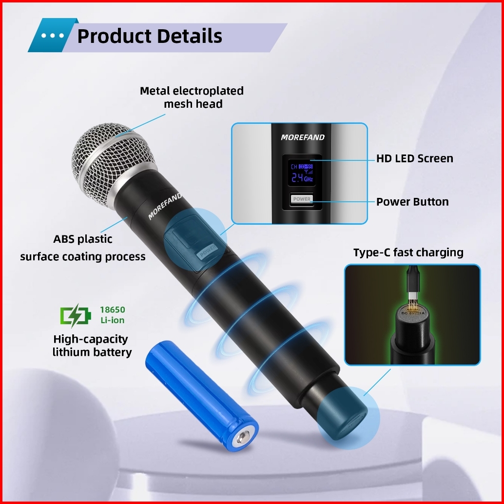 Wireless Microphone Mikrofon Nirkabel Profesional Mikrofon Ulang Genggam Penyebaranuhf Hi-resaudio