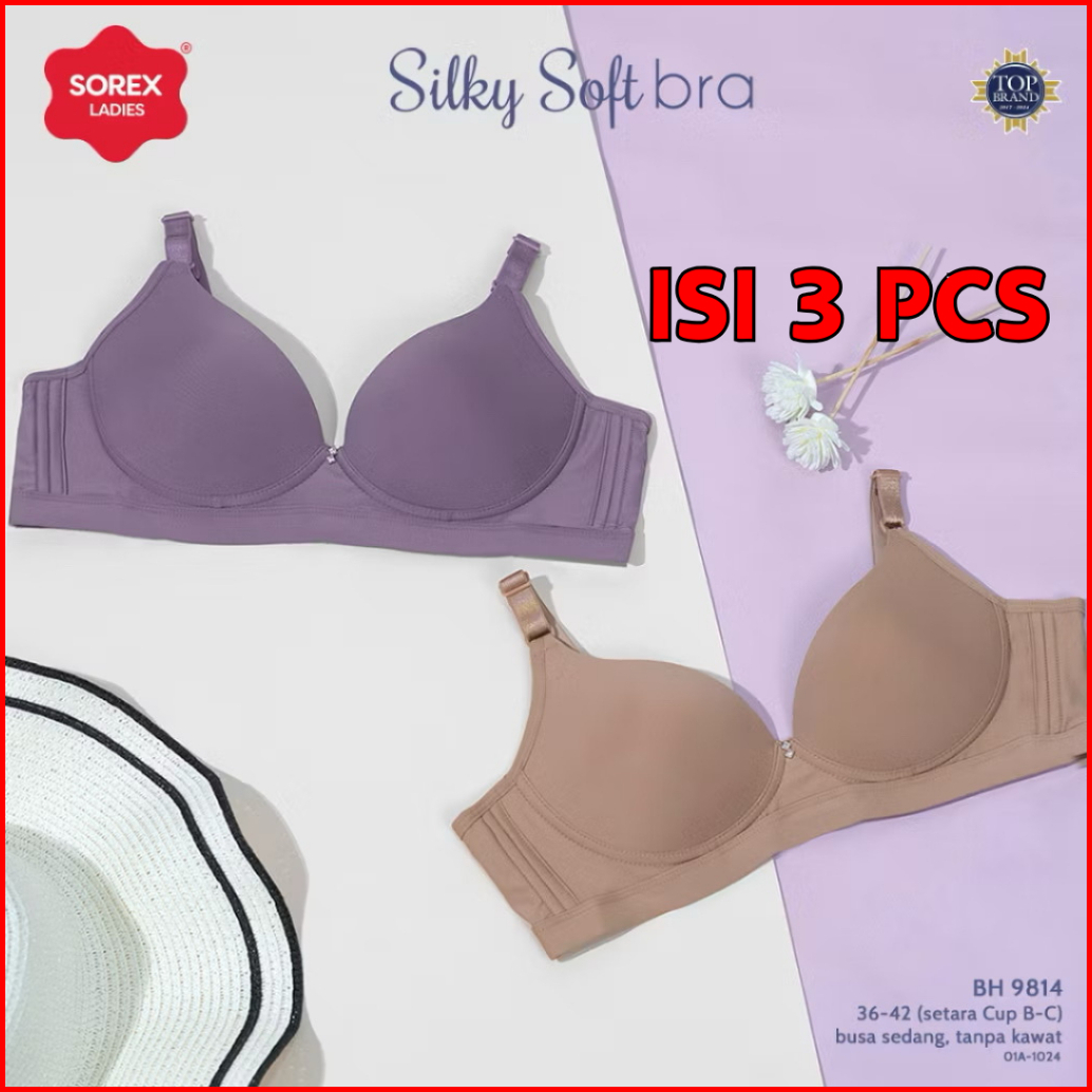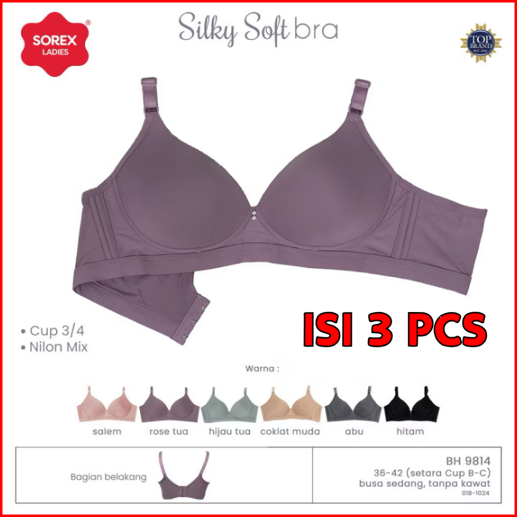 3 Pcs Sorex Bra Cup Besar Tanpa Kawat Busa Kait 3 Setara Cup B-c Silky Soft Bra Harian Bh 9814