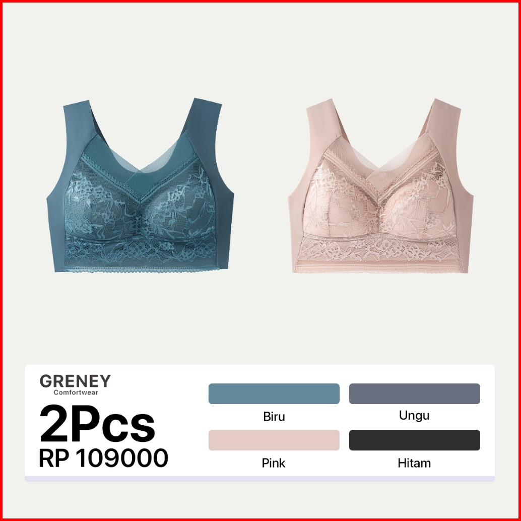 Greney-l.w.l-paket Bra 2pcs Bra Rompi Bigsize Renda Seamless Sport Push Up Bra Jumbo Big Size Tanpa Kawat Busa Tipis-894