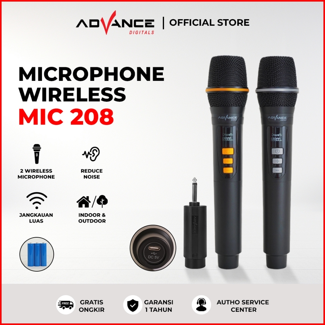Advance Mic-208 Dual Microphone Wireless Anti Noise Garansi Resmi 1 Tahun