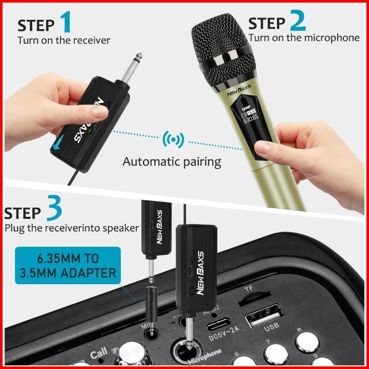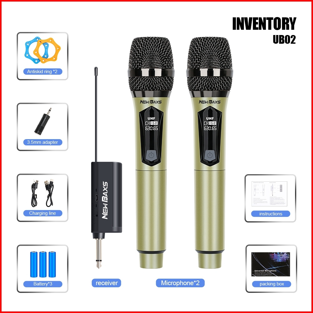 New Baxs Ub01 Ub02 Wireless Microphone Karaoke Version Professional Handheld Rechargeable Interface Tipe-c Dynamic 30-50