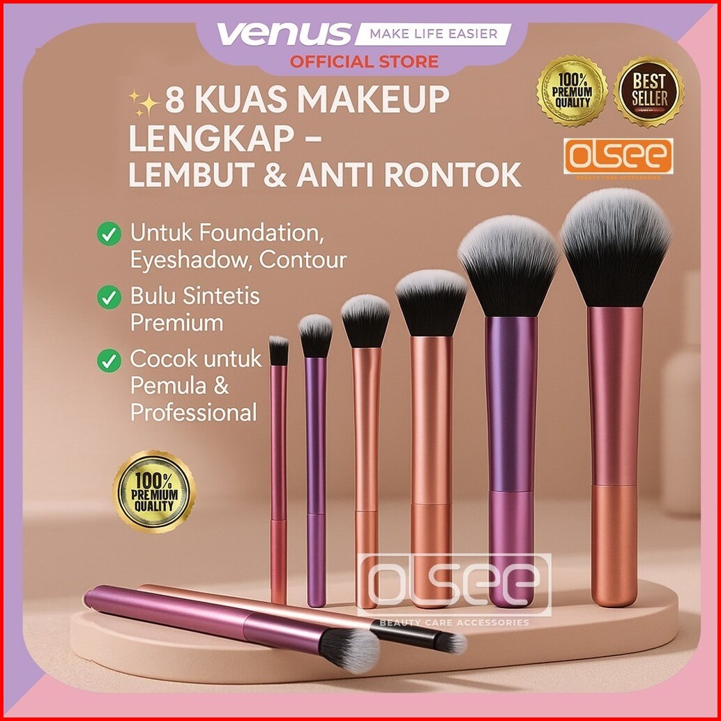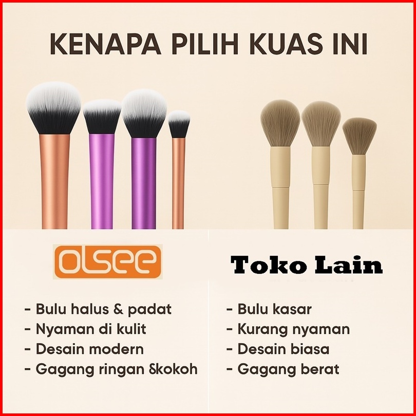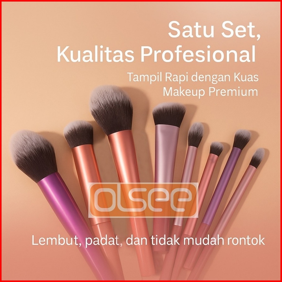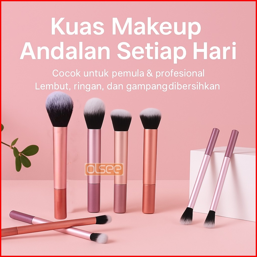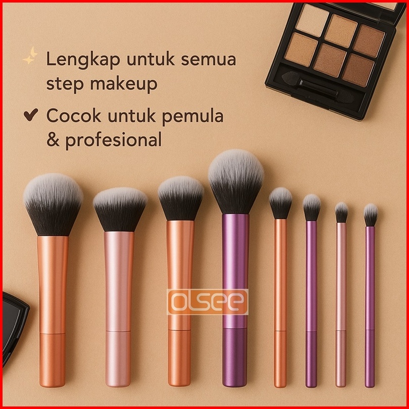 Olsee - 8pcs Brush Make Up Set Premium Kuas Makeup Foundation Bedak Blush On Concealer Eyeshadow Set Kuas Kosmetik Lembu