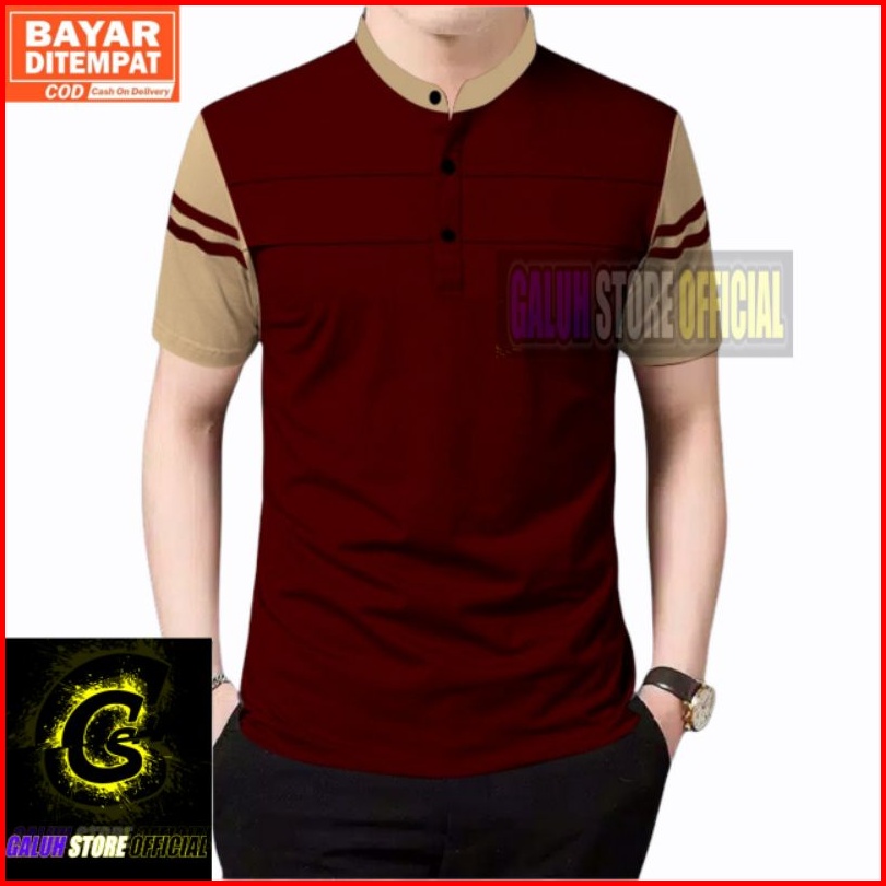 Kaos Kerah Shanghai Mandarin Kaos Raglan Pria Pakaian Pria Distro Keren Fashion Pria Kekinian Promo