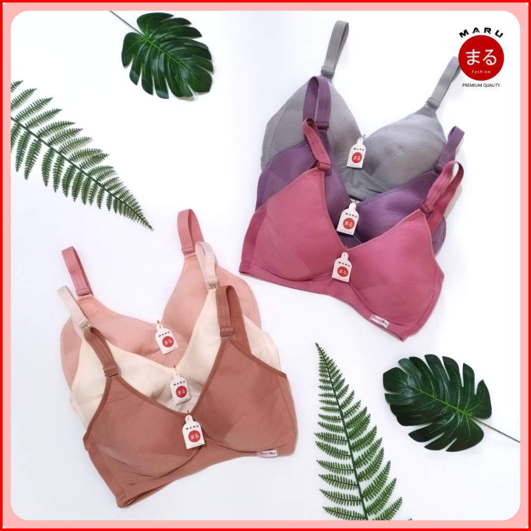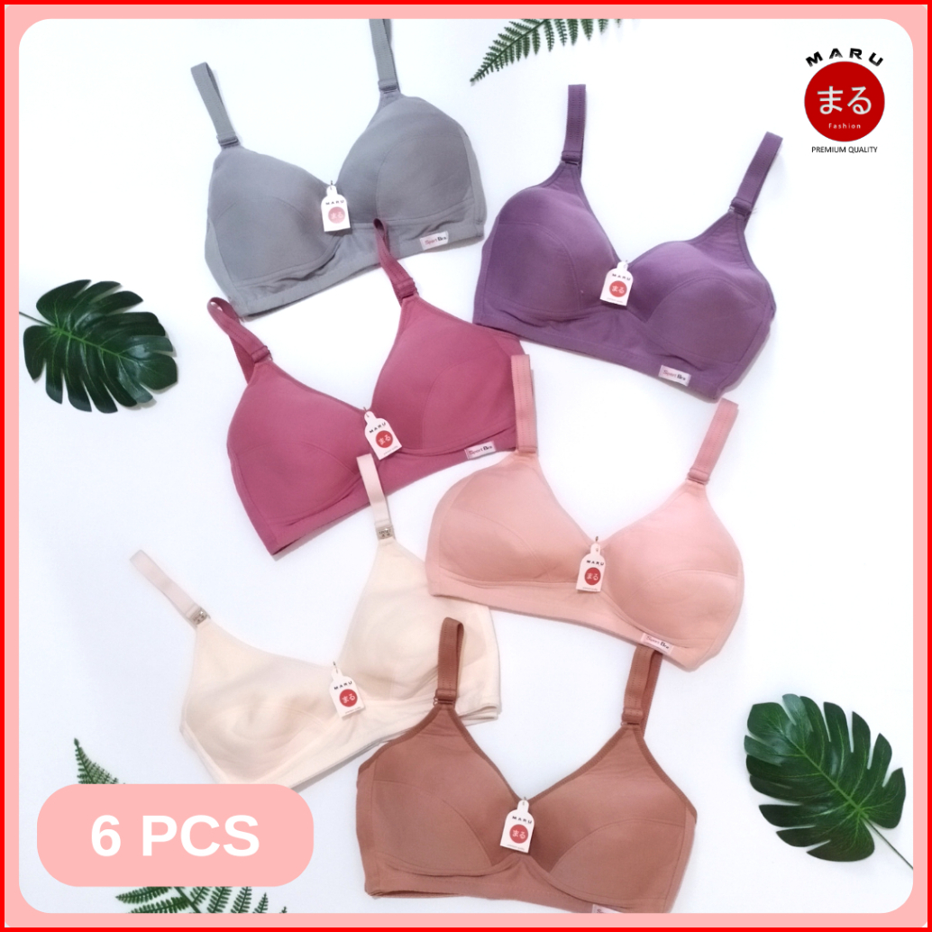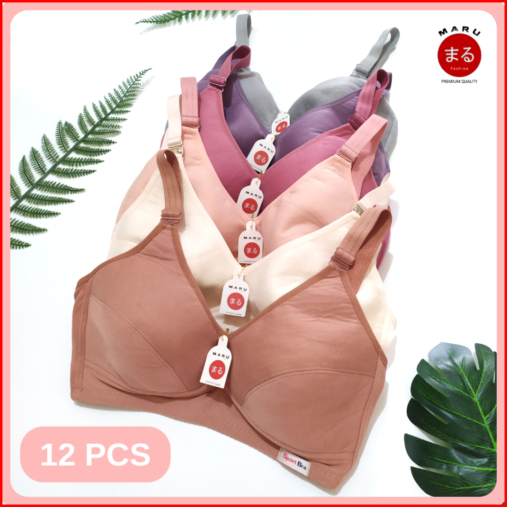 6 Pcs 12 Pcs Bra Jumbo Wanita Tanpa Kawat Busa Tipis Full Katun Sport Bra Cup Besar Kait 3 Kait 2 Uk 42-50