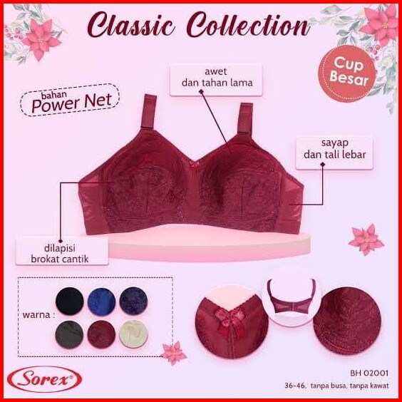 Bh Bra Classic Sorex 02001 Tanpa Busa Tanpa Kawat Big Size