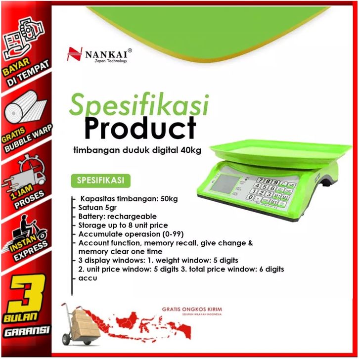 Nankai Timbangan Duduk Digital 40kg Body PVC | Timbangan Duduk Digital NANKAI 40Kg Timbangan ACS Nankai 40 Kg