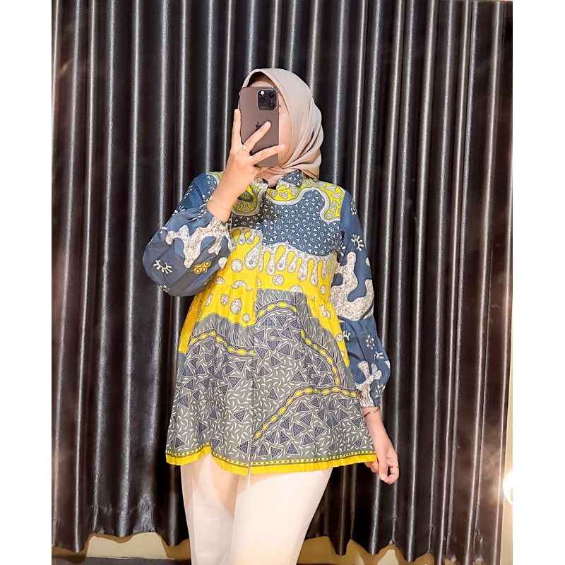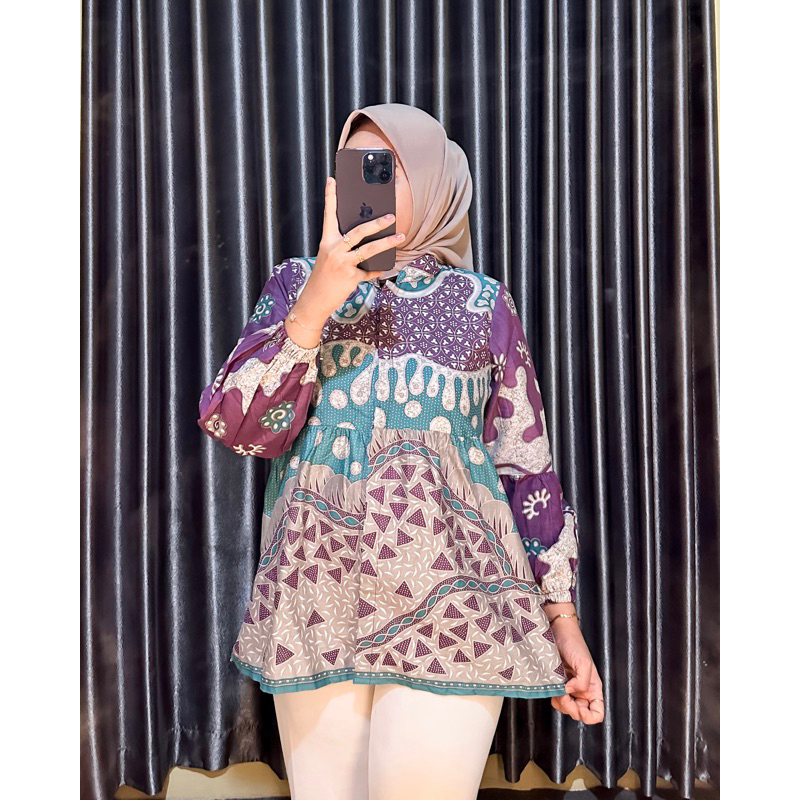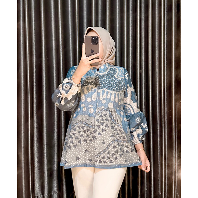 Blouse batik wanita Batik ASJ SA HRB026 Kenongo Kemeja Tosca Pendek