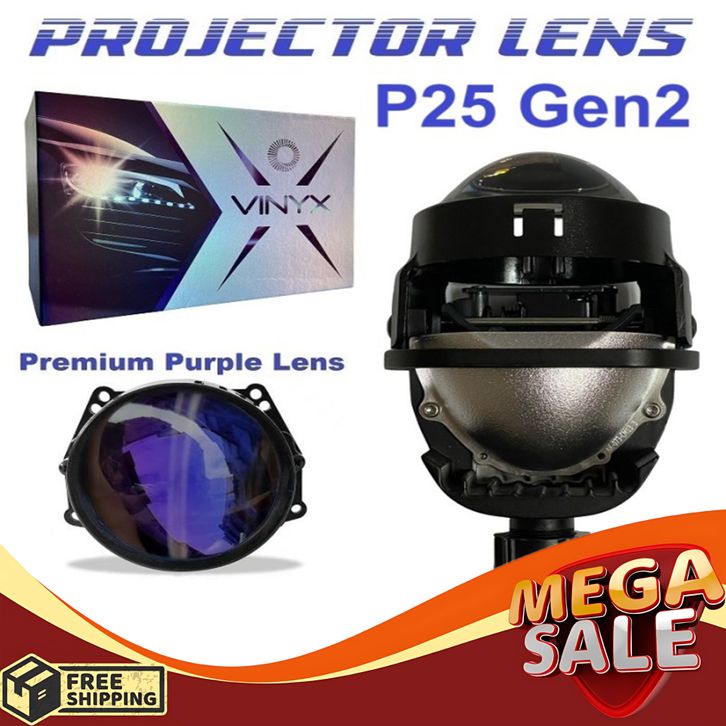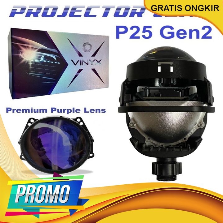 Lensa Lampu LED Projector Projie BiLED 2.5 Inch Motor Mobil Vinyx P25 - Vinyx P25 gen2, FLAT GRATIS ONGKIR