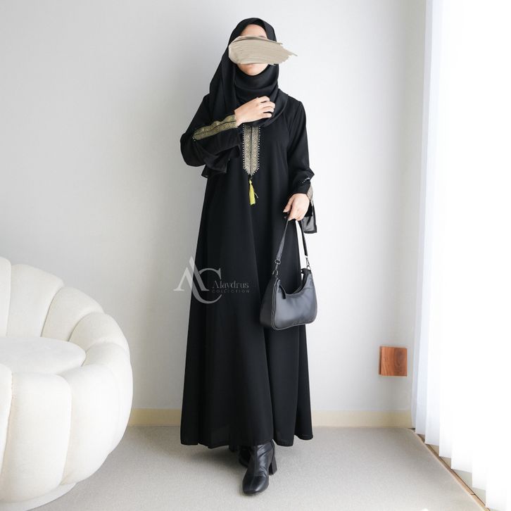 Alaydrus Collection Abaya Hitam TurkeyAlaydrus Collec Heidy Gamis Syari Muslimah Jetblack Hitam Kombinasi Renda TERLARIS