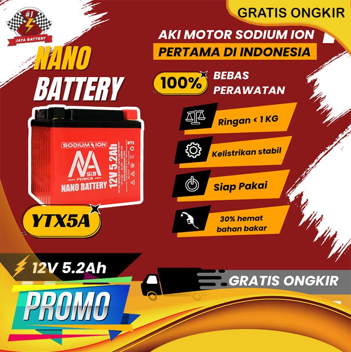 [Mall] NANO BATTERY Aki Motor Sodium Ion 12.V 5,2A YTX5A / GTZ6V Aki Motor Beat Vario Scoopy PCX NMAX SUPRA
