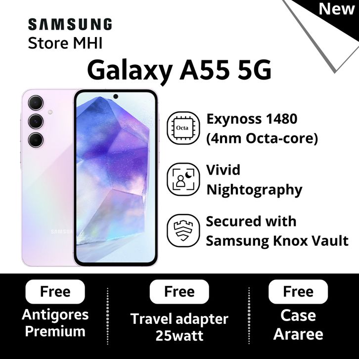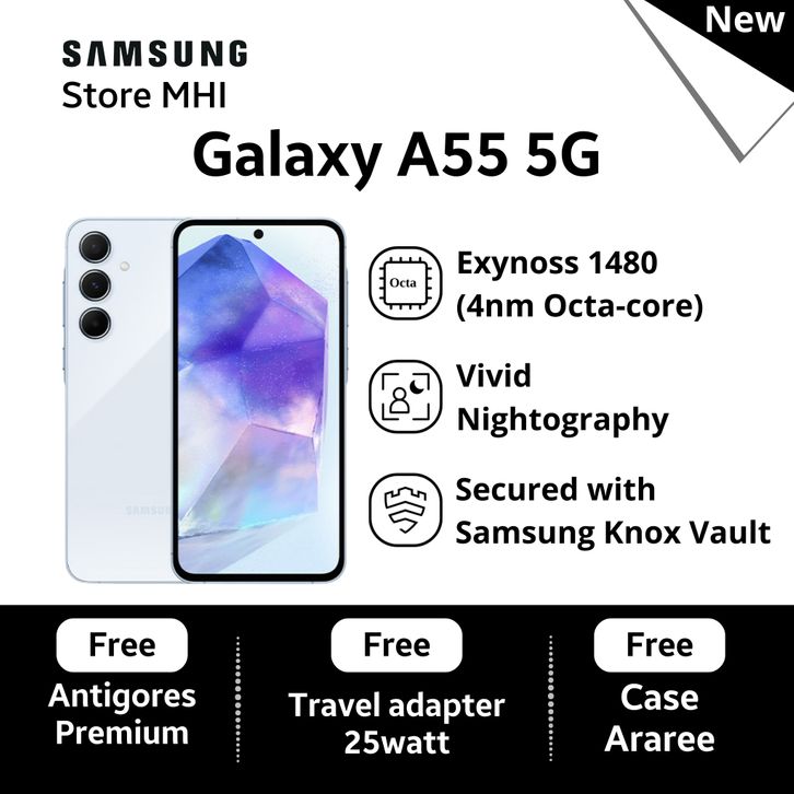 Samsung Galaxy A55 5G 8/256GB 6.6 Inchs 120Hz 5,000mAh Bluetooth v5.3 Baru Original Garansi Resmi 1 Tahun Tanpa Dp