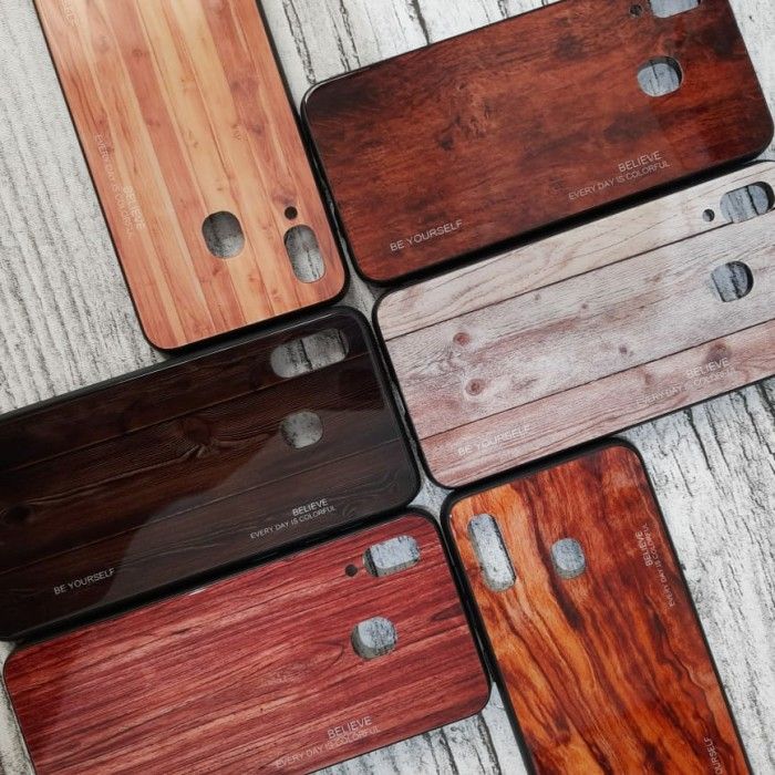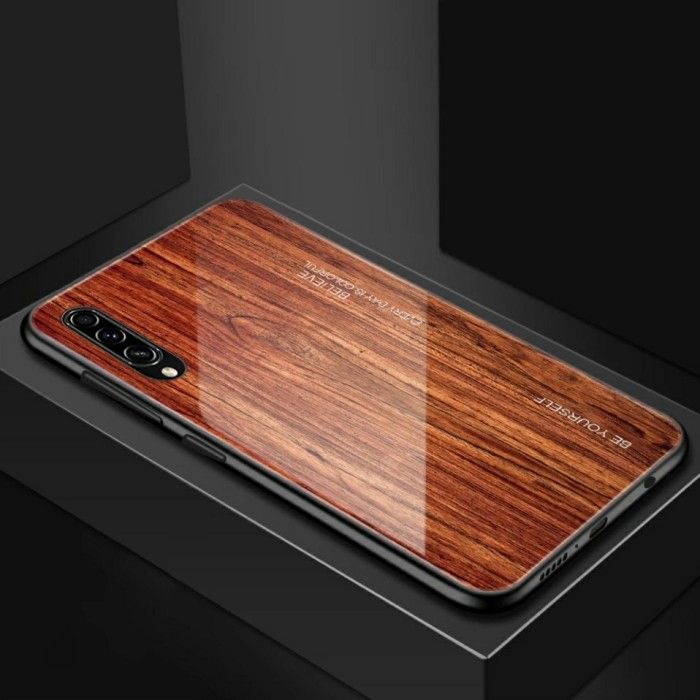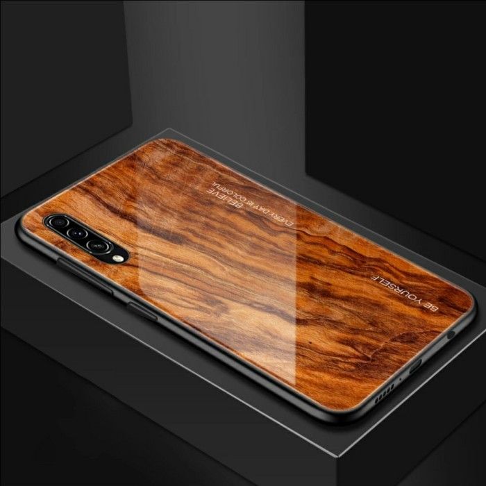 WoodGrain Glass Case Samsung Galaxy A20 A30 A50 SamsungA20 Casing HP - E, A20/A30