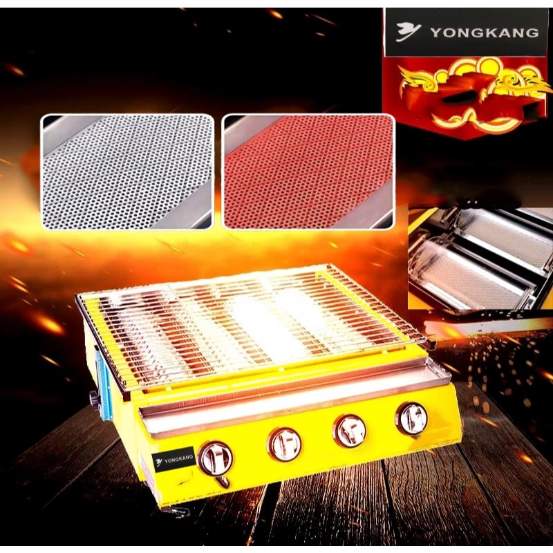 kompor Panggangan sosis BBQ 2 tungku GF-Q2-B alat pemanggang Ayam Ikan daging stainless steel