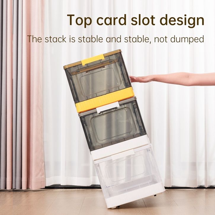 Kotak Baju Bayi "Deli Vusign Folding Container Box/Storage Box Lipat Penyimpanan Serbaguna Beroda Plastik Dual Lid VS48