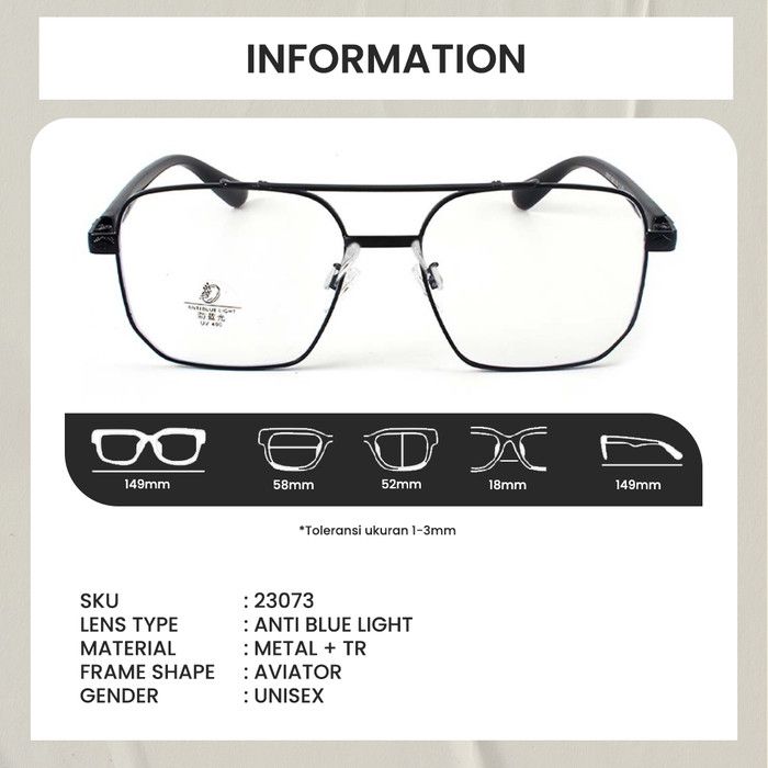Kacamata Aviator Anti Radiasi Blueray Photocromic Minus Baca Frame Metal TR Pria Wanita Bluecromic Berrybarton 23073
