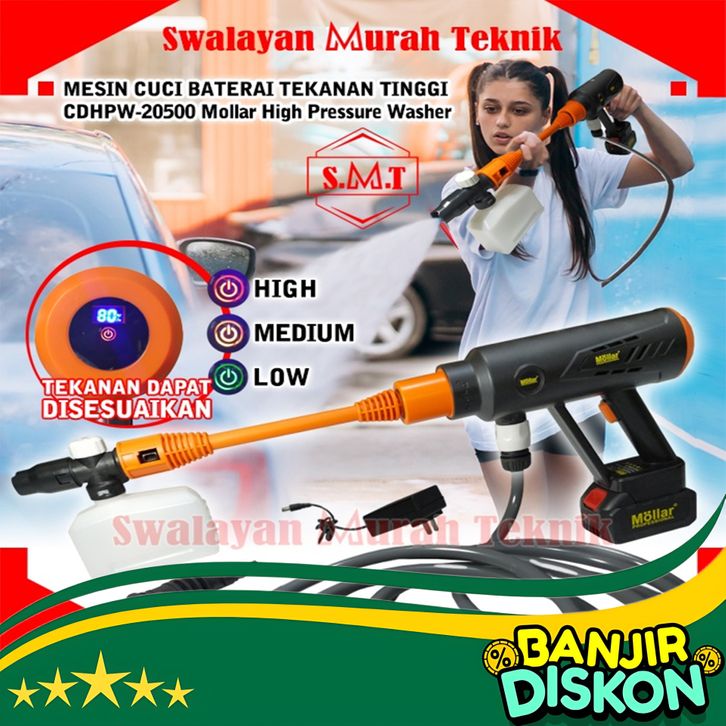MOLLAR CDHPW20500 Q7 JET CLEANER CORDLESS DIGITAL STEAM CUCI MOBIL MOTOR BATERAI 3 MODE PRESSURE