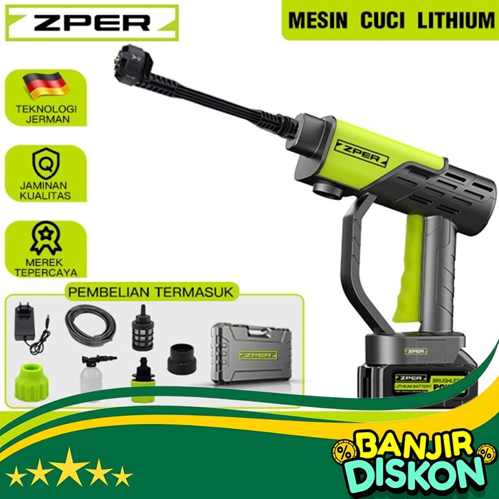 ZPER Alat Cuci Mobil Air Tekanan Tinggi Alat Portable Nirkabel Untuk Nyuci Mesin Cuci Lithium ZP005