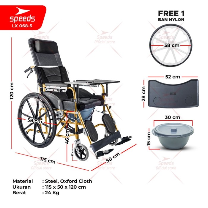 SPEEDS KURSI RODA TRAVELING BISA DILIPAT KURSI RODA ALLUMINIUM 068-4 - 6 HITAM