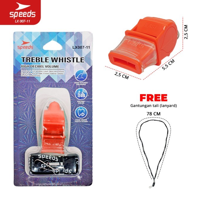 SPEEDS PELUIT WASIT TREBLE WHISTLE SUARA 120DB HANDLE GRIP JARI 007-13 - 18 BIRU