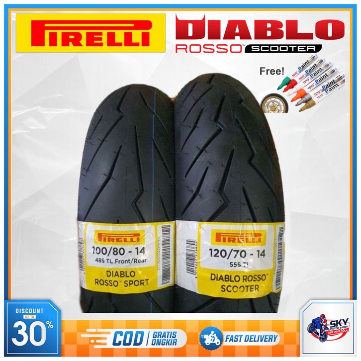 Ban Pirelli Diablo Rosso Scooter Sport 100/80 & 120/70 Ring 14 Vario 160 Tubeless Free Pentil & Cat Ban