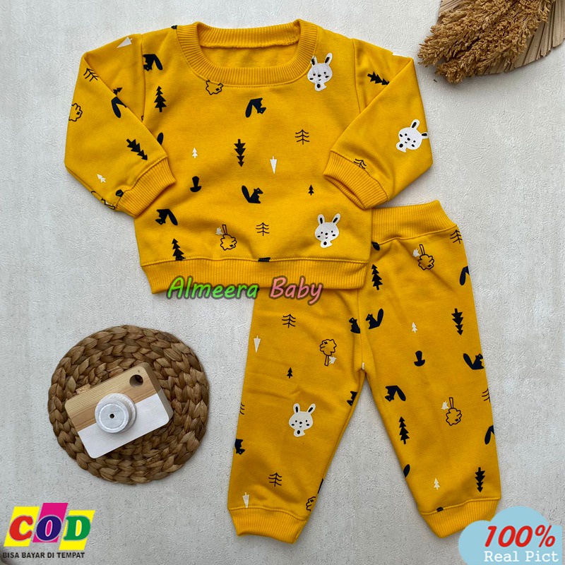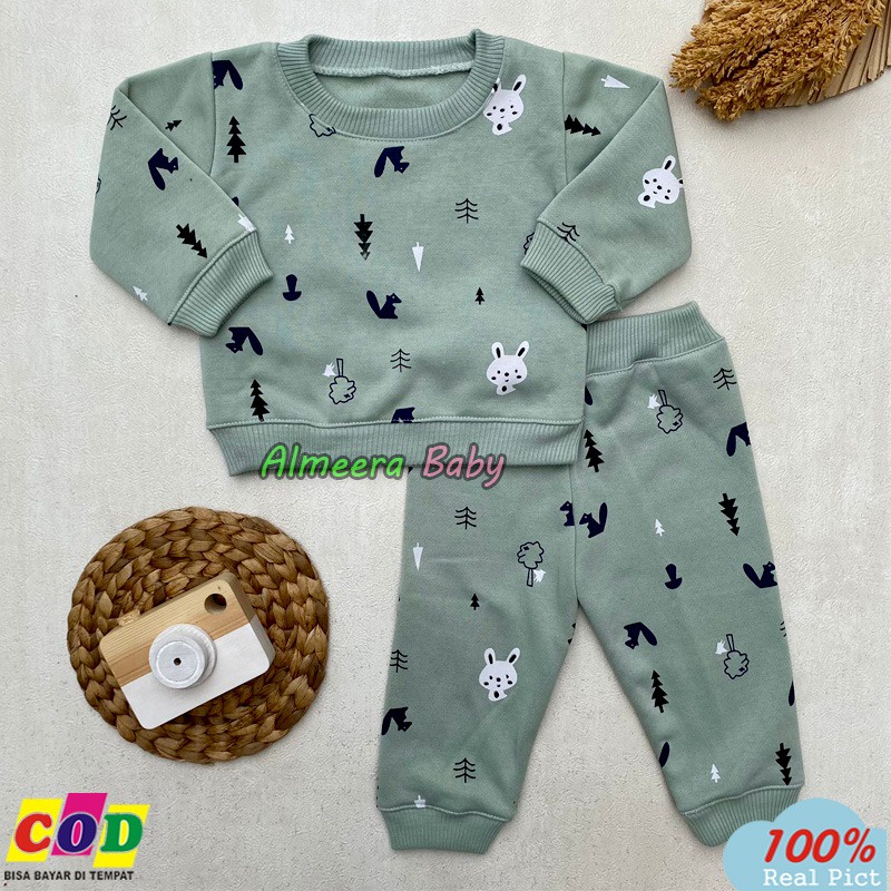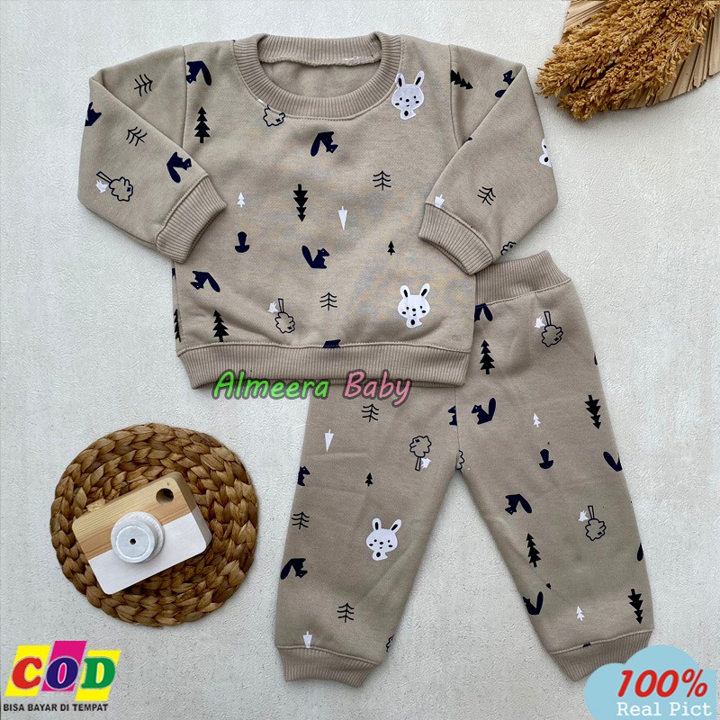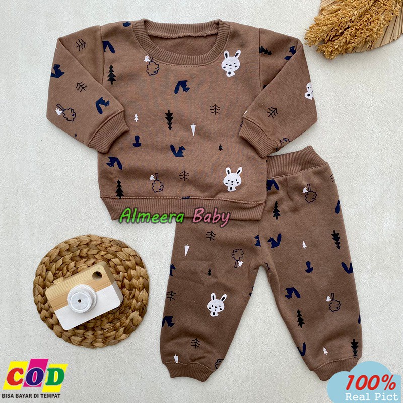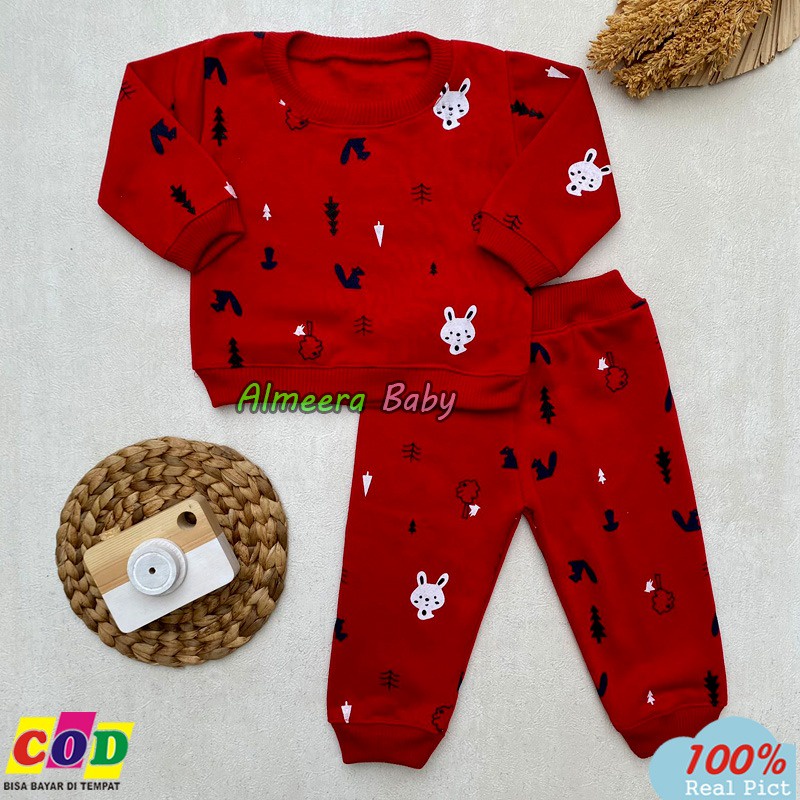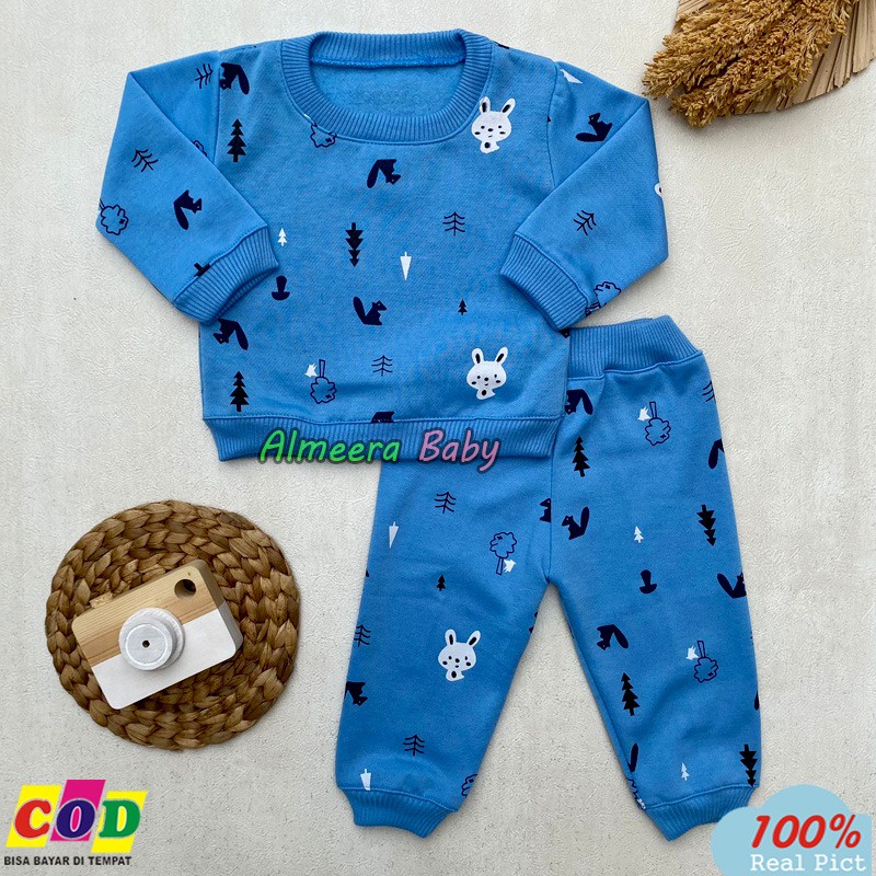 Setelan Sweater Bayi Celana Jogger Bayi Usia 3-12 Bulan Motif Kelinci Almeera Baby and Kids