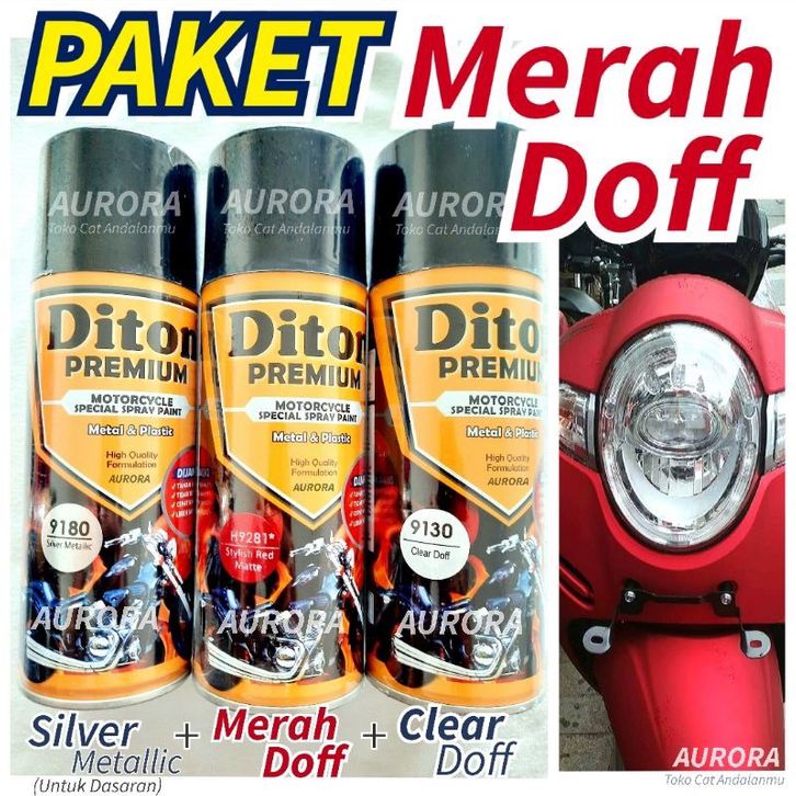 Pilox Diton Premium PAKET Diton Premium Stylist Red Matt 9281 Merah Doff isi 3 | cat semprot sepeda motor mobil pilok p