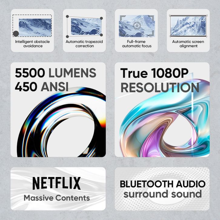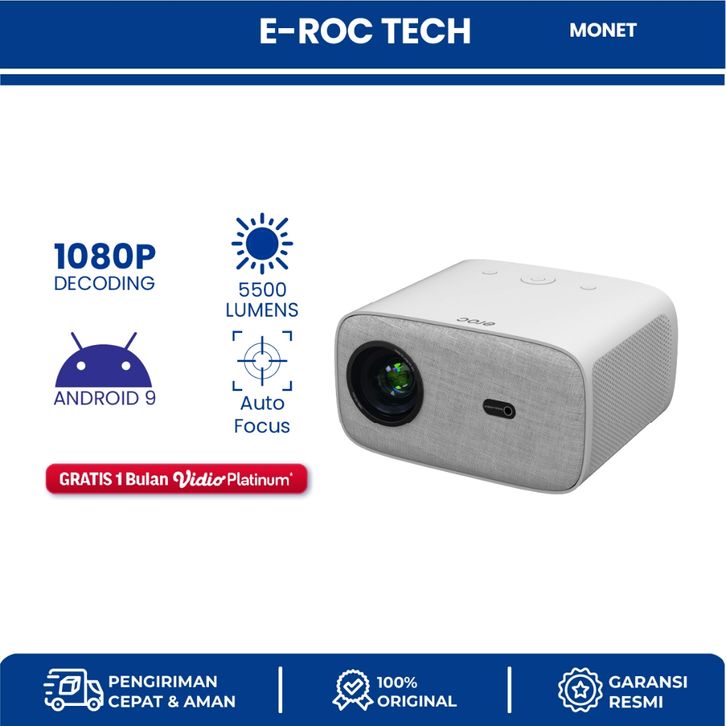 EROC - MONET Projector FHD 450 ANSI Android 9 OS 200" Screen BT5.0 2.4 + 5G Netflix - Auto Focus