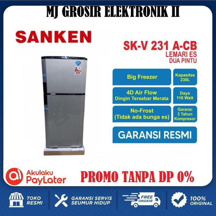 GRATIS ONGKIR KULKAS SANKEN SK-V 231 ACBG LEMARI ES 2 PINTU SK-V231ACB 230 Liter 231 GARANSI RESMI