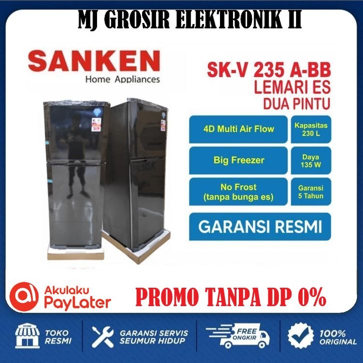 GRATIS ONGKIR KULKAS SANKEN SK-V 235 ABB LEMARI ES 2 PINTU SK-V235 230 Liter TANPA BUNGA ES GARANSI RESMI