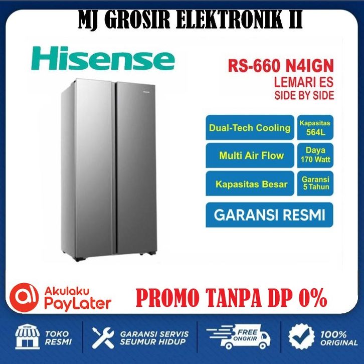 GRATIS ONGKIR KULKAS HISENSE RS 660 N4IGN LEMARI ES 2 PINTU SIDE BY SIDE GARANSI RESMI