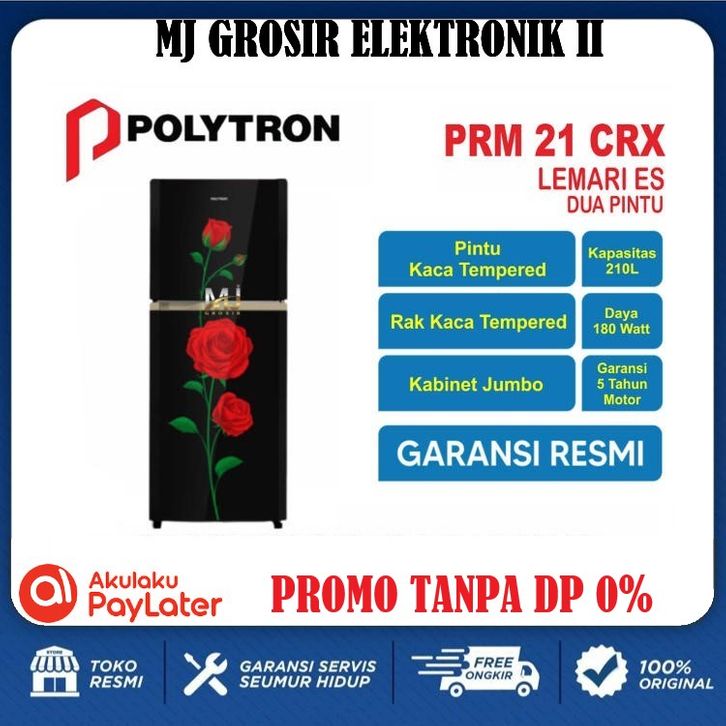 FREE ONGKIR KULKAS POLYTRON PRM 21 CRX / 28 CRX LEMARI ES 2 PINTU NEW TANPA BUNGA ES GARANSI RESMI