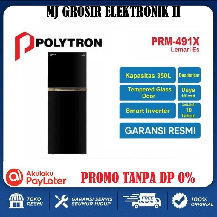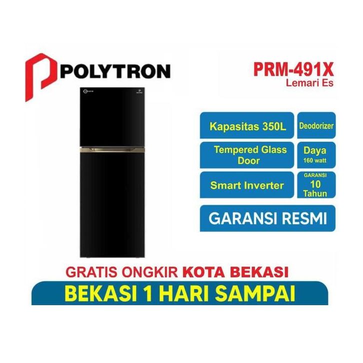 GRATIS ONGKIR KULKAS POLYTRON PRM 491 LEMARI ES 2 PINTU TEMPERED GLASS INVERTER 350L GARANSI RESMI