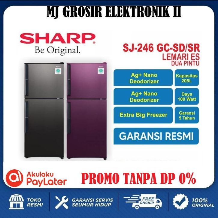 GRATIS ONGKIR KULKAS SHARP SJ 246 GC SD LEMARI ES 2 PINTU SJ246GCSD SJ 246GC SD GARANSI RESMI