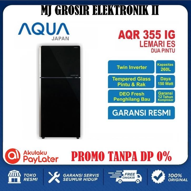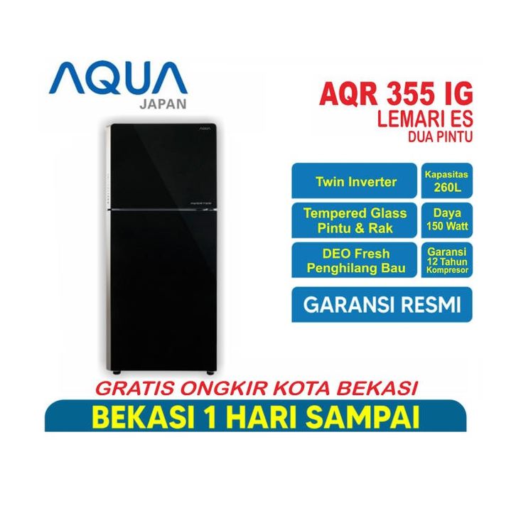 GRATIS ONGKIR KULKAS AQUA JAPAN AQR 355 IG-BK LEMARI ES 2 PINTU INVERTER GARANSI RESMI