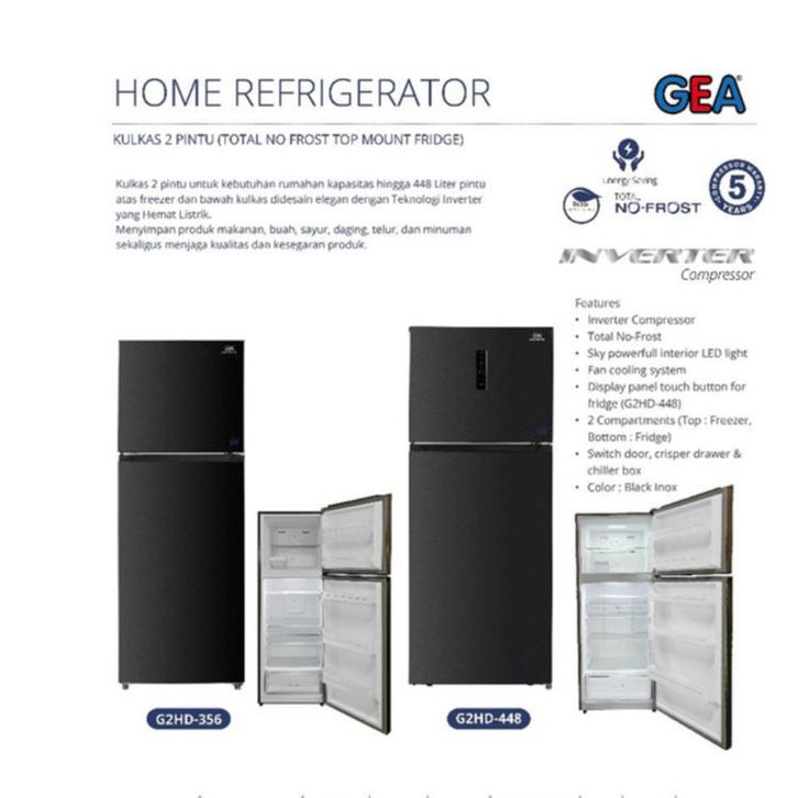 GRATIS ONGKIR KULKAS GEA G2HD 356 LEMARI ES 2 PINTU G2HD-356 2 PINTU INVERTER GARANSI RESMI