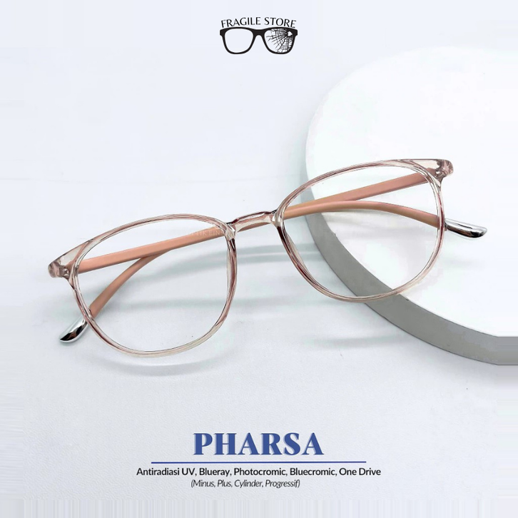 Kacamata Photocromic Pharsa Minus Plus Wanita Pria Bahan Lentur Elastis Anti Radiasi Frame Bulat Cat Eye Best Seller