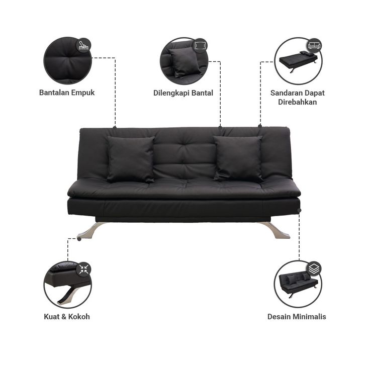 SOFA BED KULIT GREESA HITAM MULTIFUNGSI 3 SEATER SOFABED KASUR LIPAT 2 IN 1 KURSI RUANG TAMU KANTOR MODERN MINIMALIS