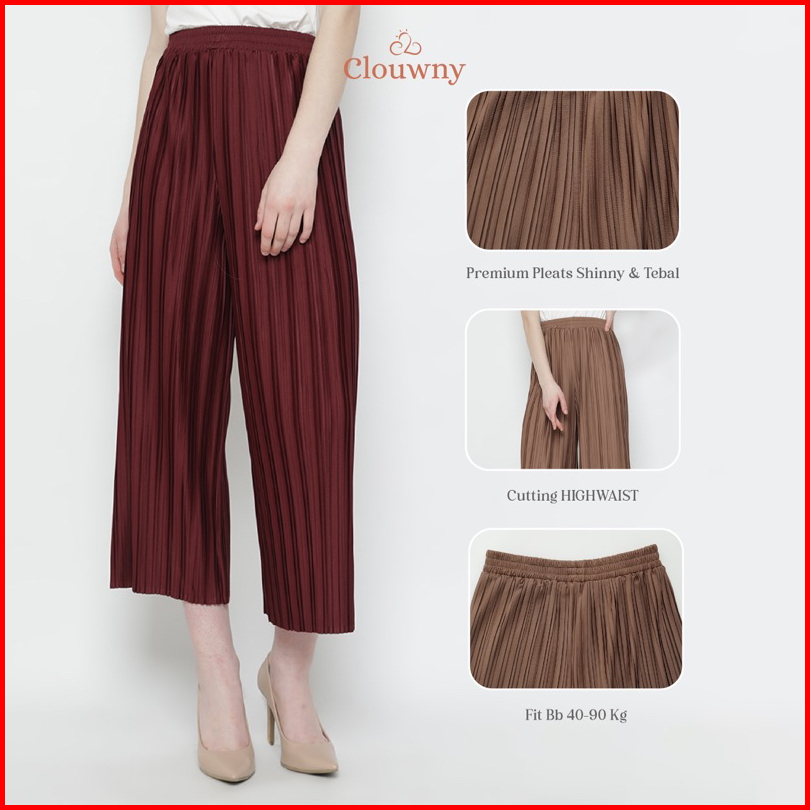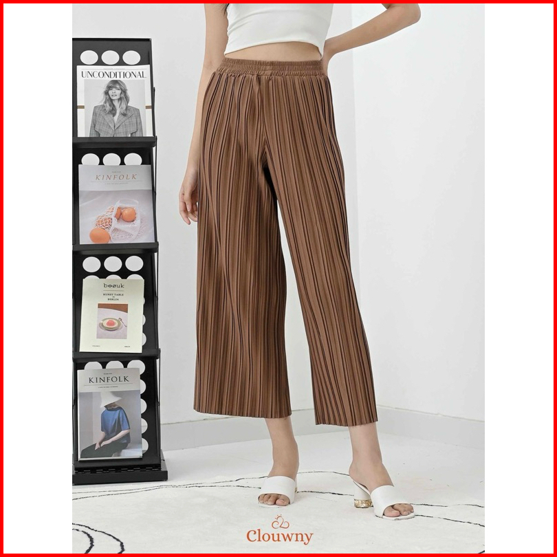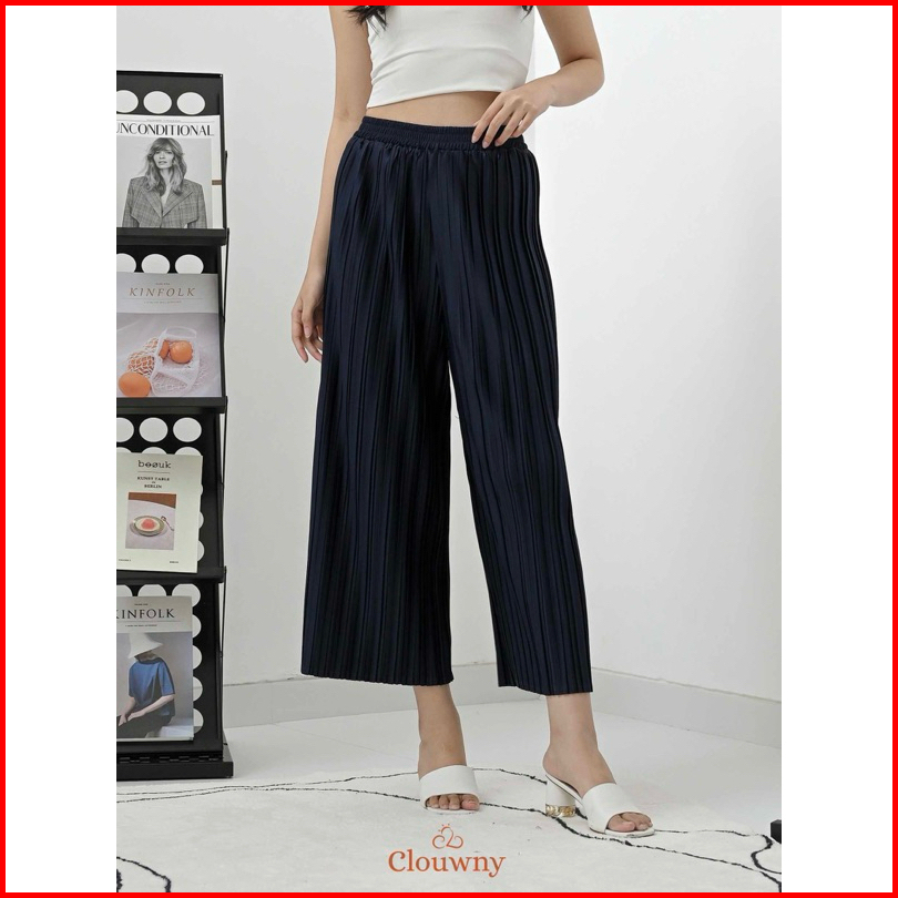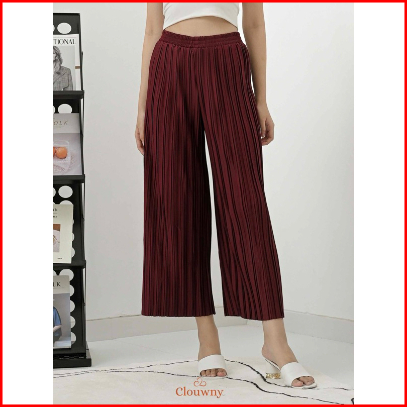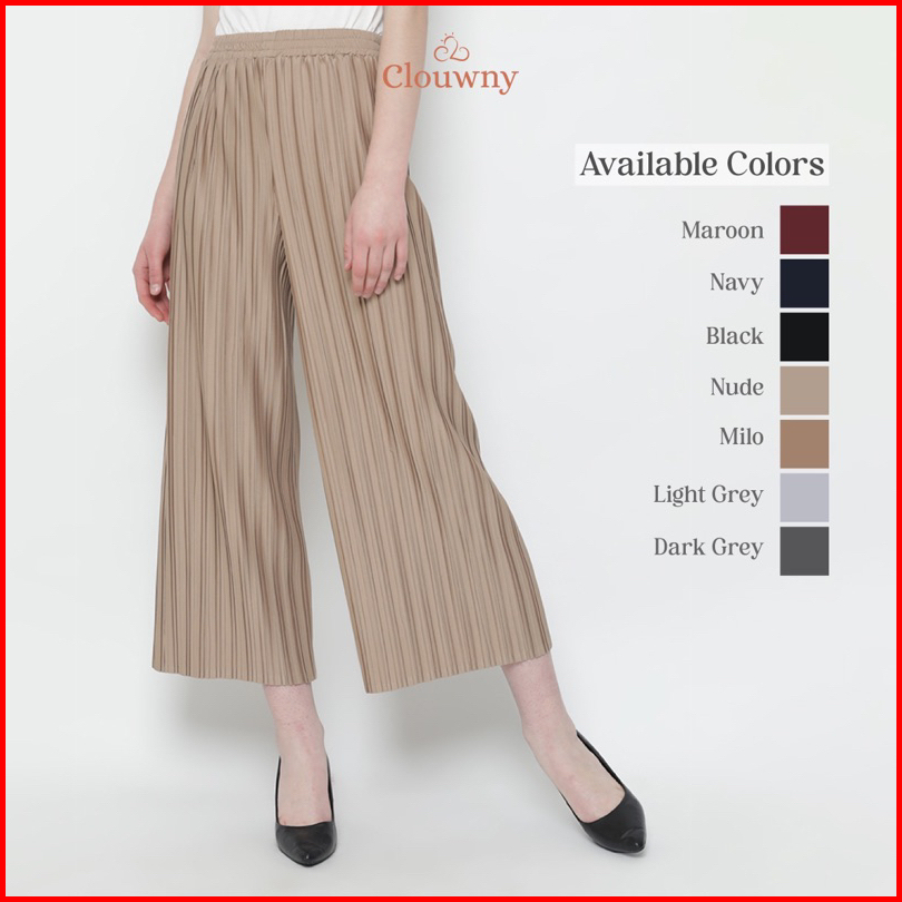 Clouwny Rain Pleats Kulot Celana Kulot Wanita Fashion Wanita