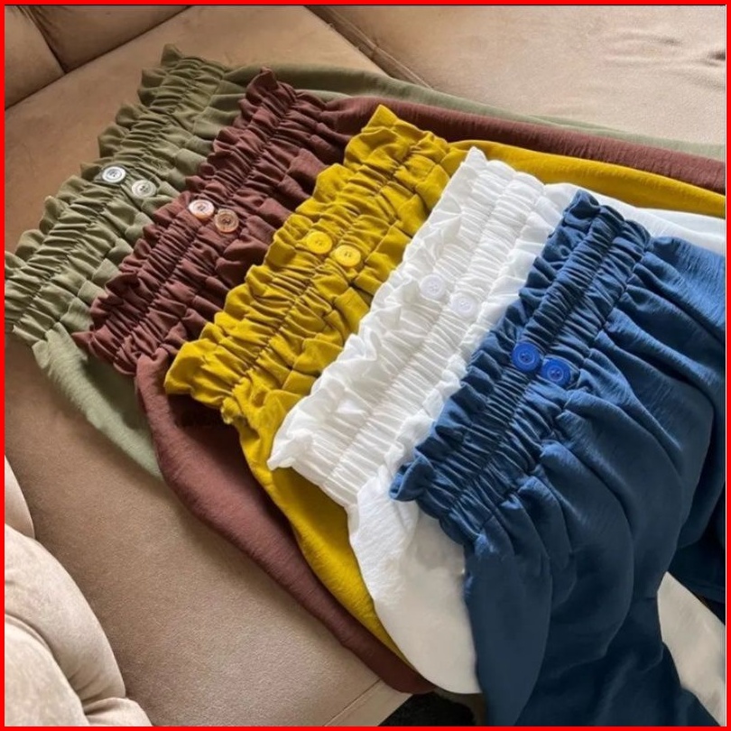 Kulot Highwaist Variasi Kancing Dua Full Karet Cringkle Airflow